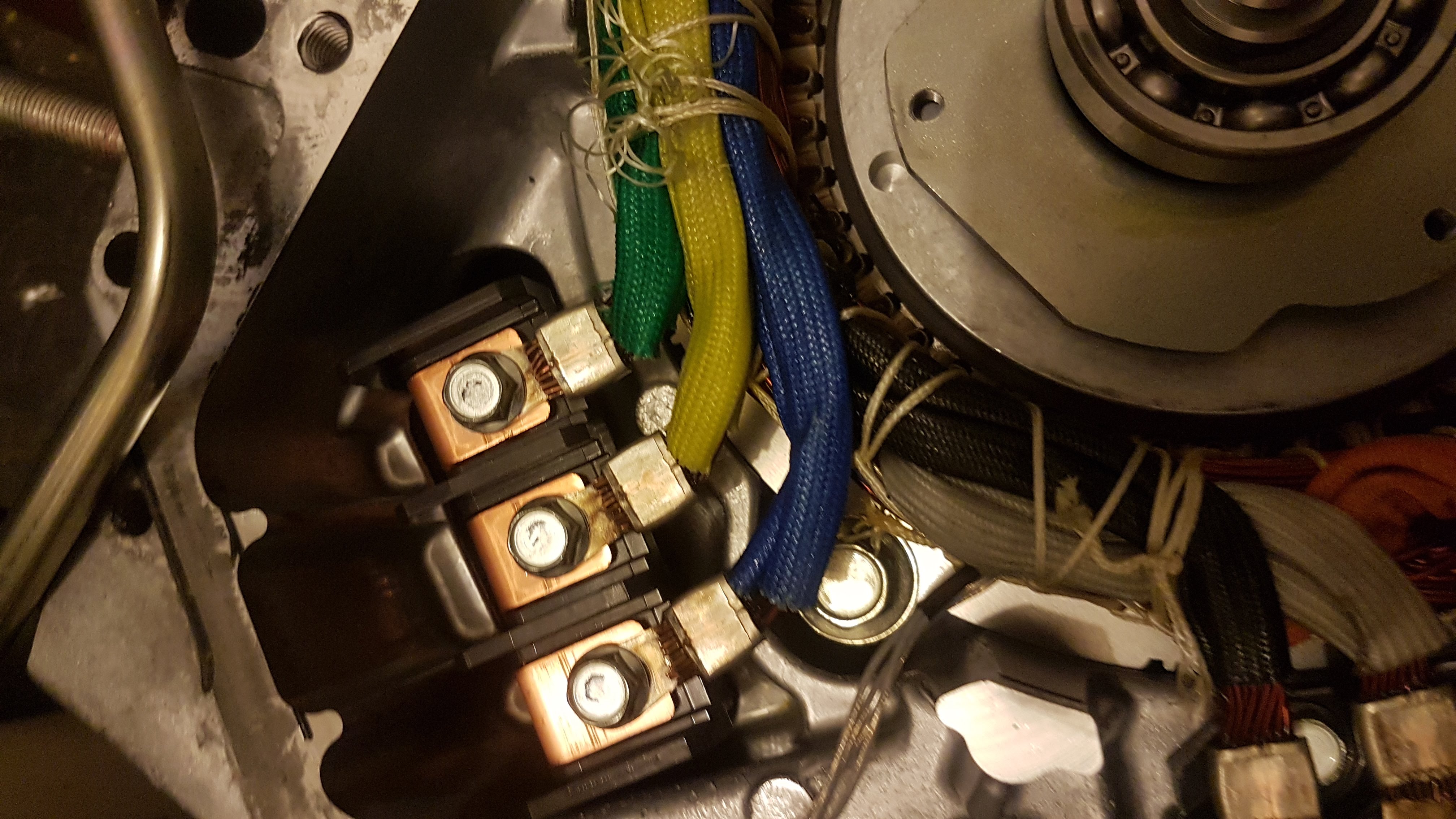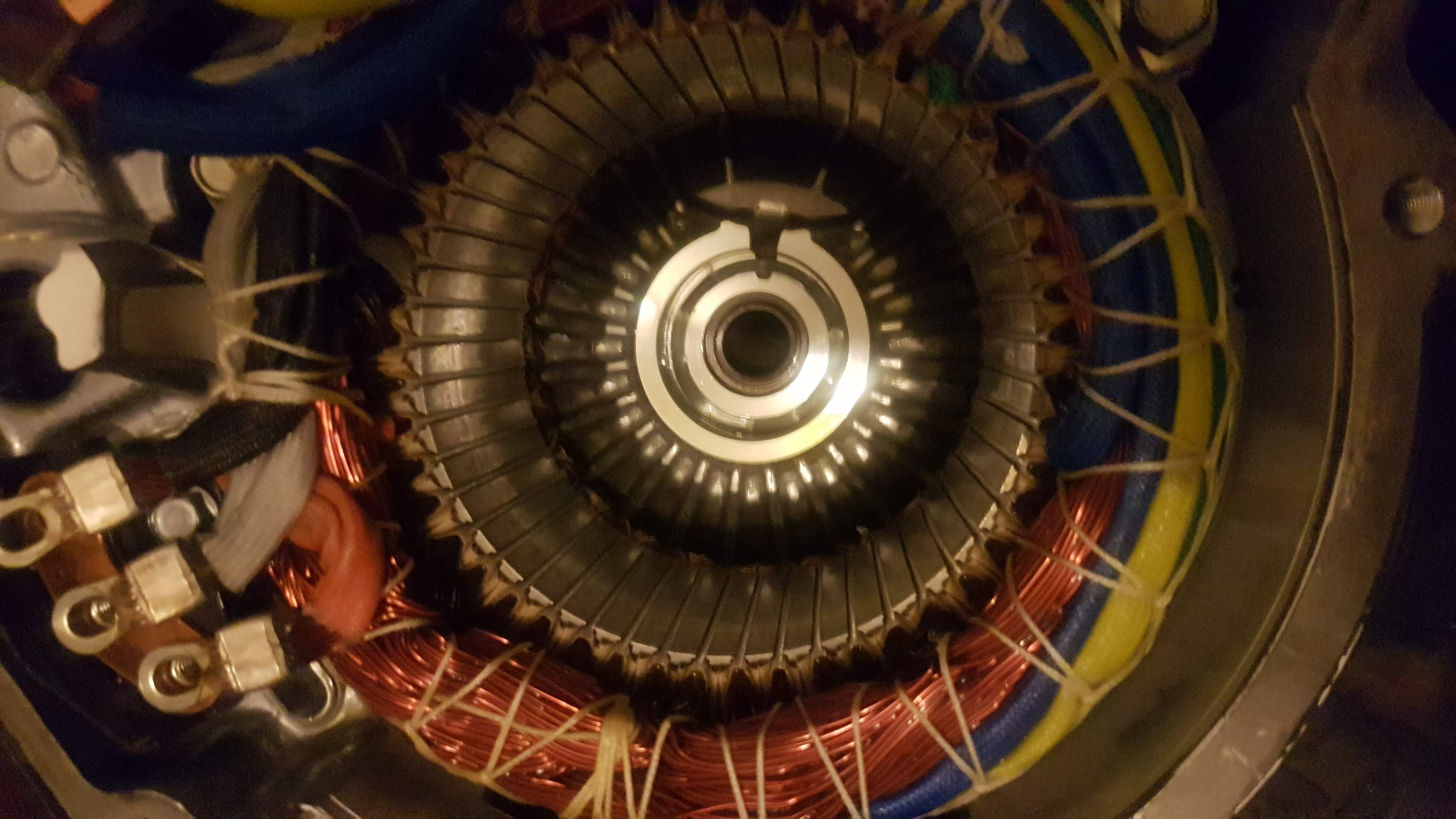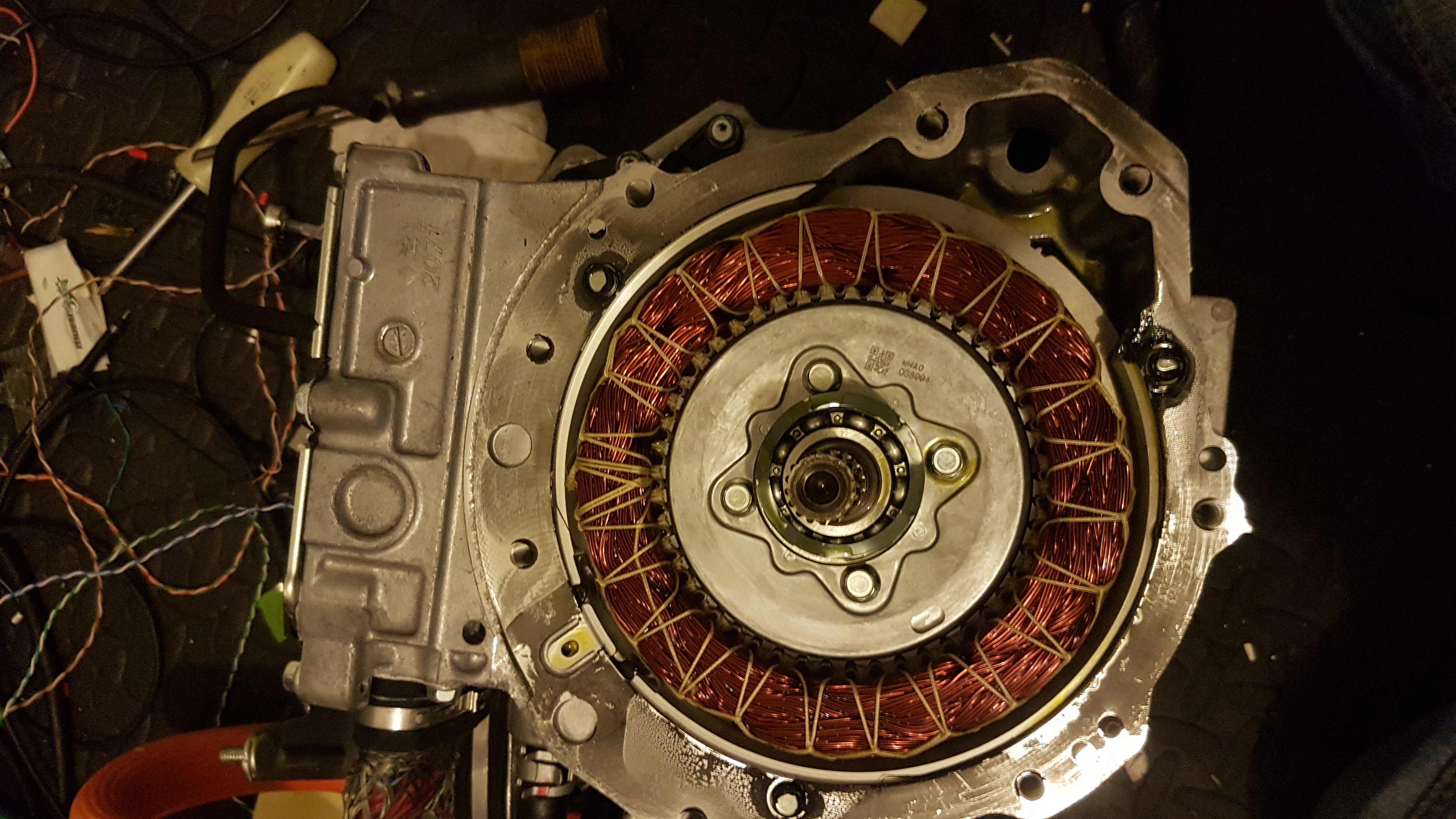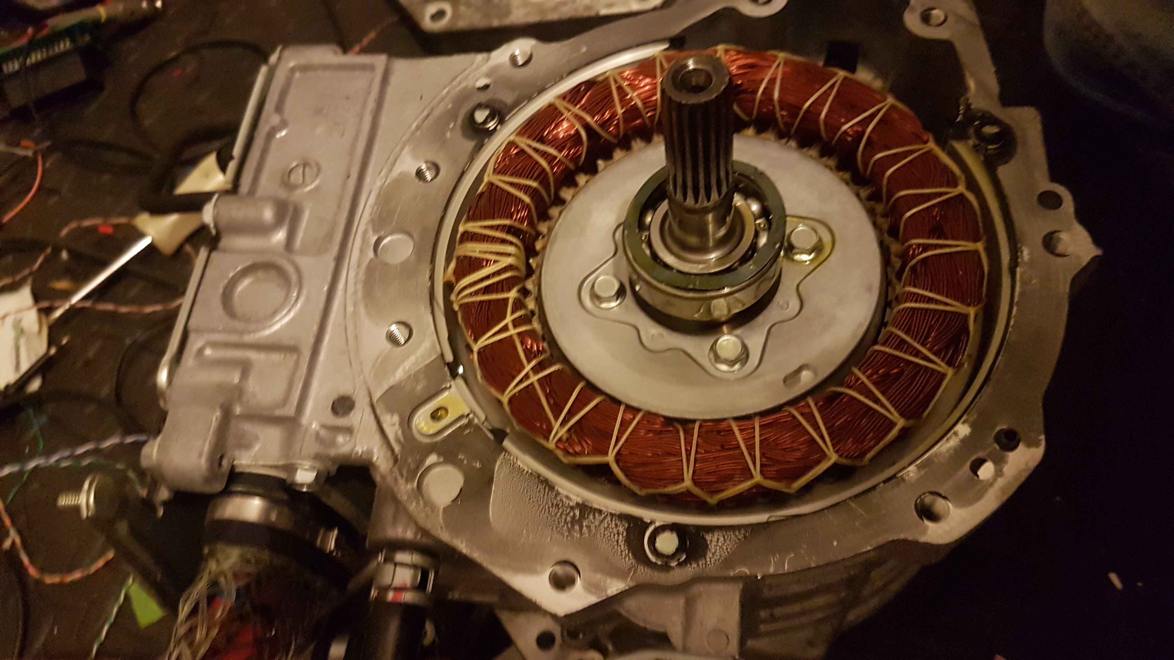 Just had been tearing down the front motor of the pair attached to the gearbox from an outlander, main aim was to see if I could retrieve one of the thermistors. Plan B might be to lay the stator in a bath of oil and heat it and take readings instead.