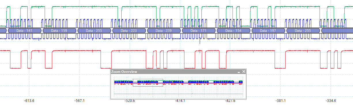 This scope can use multiple serial decoding patterns as well, so i can try that later on if you like. Today, whilst i was doing this, the laptop decided to shut down. So these are the only traces i got today. So will try again another day.