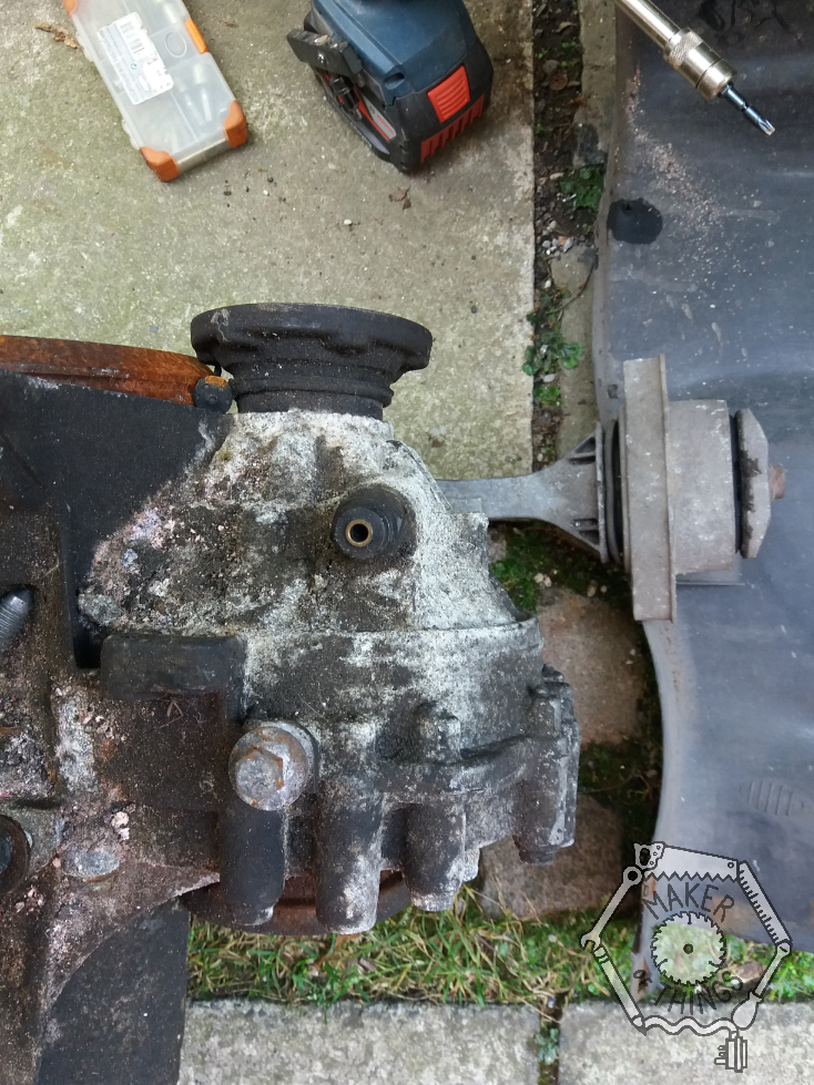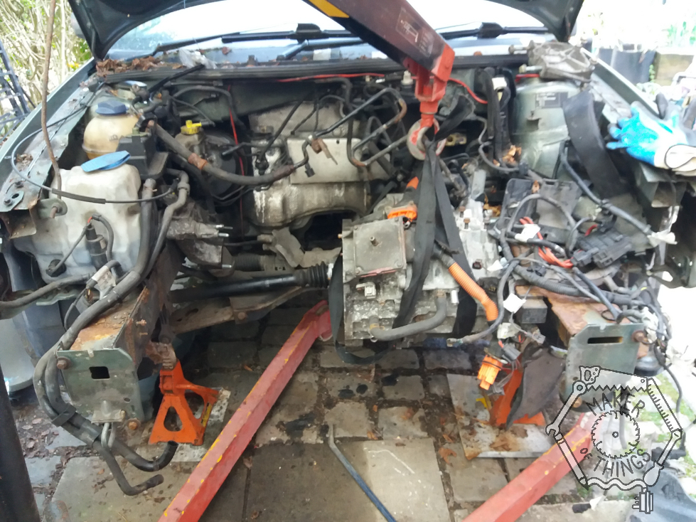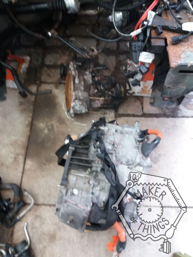 The first stage of this next part is to do a trial install of the Prius transaxle and see where it needs to fit. I can then work out temporary, and then permanent, mounting points for it.