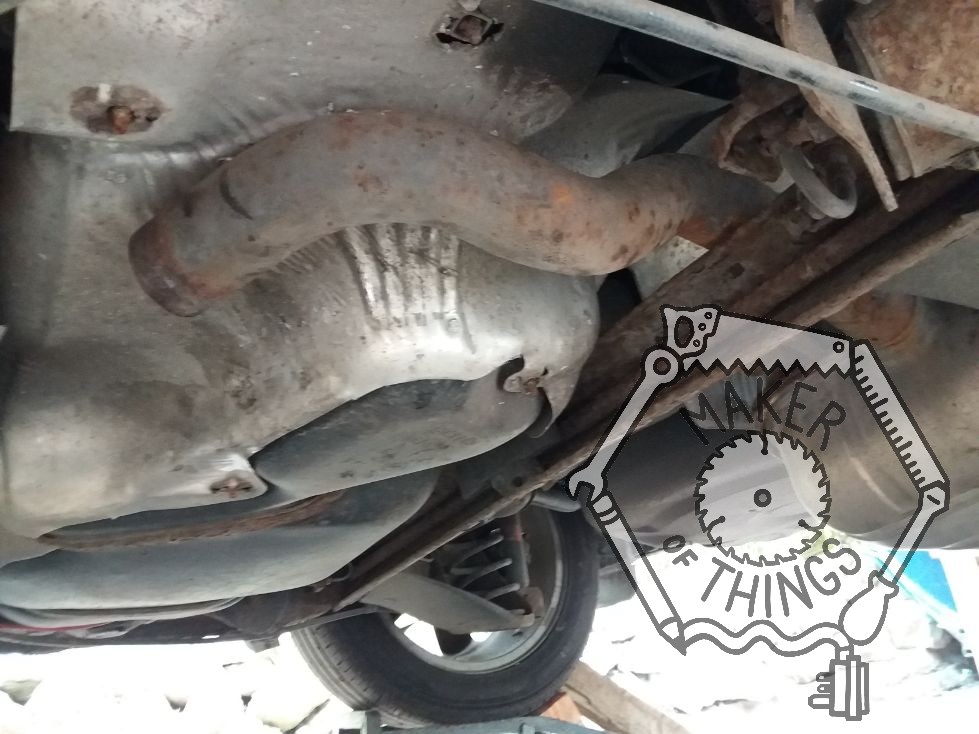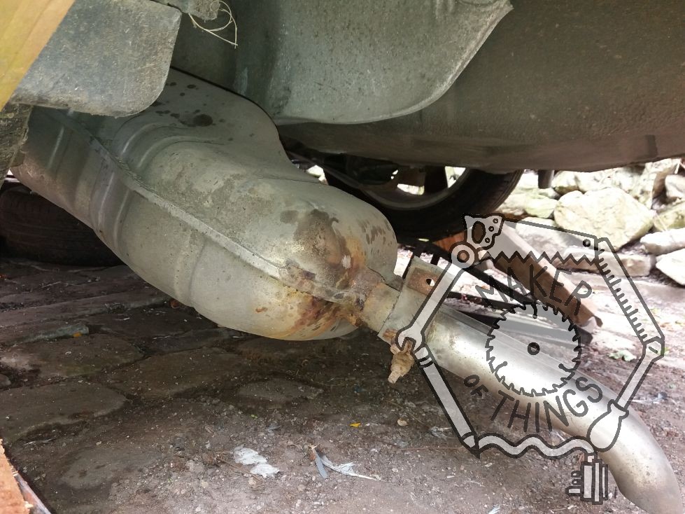 The original design meant the exhaust pipe went in before the axle, so replacement means cutting it out and also cutting the new pipe to allow it to fit, and then re-joining it.