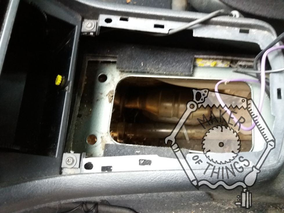 Then inside, with the gear stick boot unclipped and the ashtray removed, there was access to two 13mm AF nuts at the top.