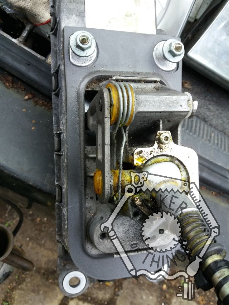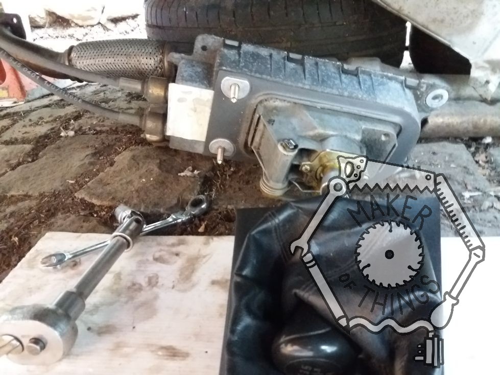The mechanism then just falls off and the gearstick boot and be fed through the hole in the floor.