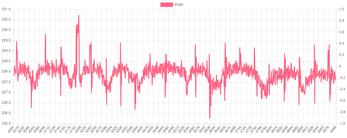 I'm agreeing that the 20mV dips on the ADC signal can not be the cause of a 10 degree fluctuation in the angle, when doing the math of how angle is calculated. But question remains, what then can be the cause of the spikes?