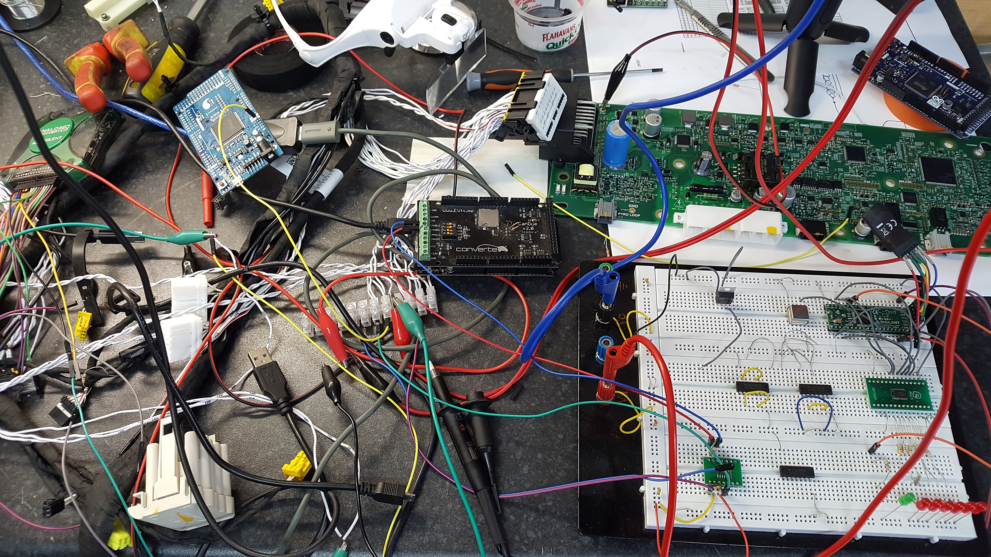 Some good progress this evening. Worked back through the hv controller to find where the ipc can terminates. A real tour de force but it seems to end up in several places one of which is a qfp device with a weird part number. Decided to try something. Rigged up a 65HVD255 CAN transciever on a breadboard with Tx and Rx connected to the PCS and a short can line connecting it to the candue. Fired up the PCS and bingo. With the transciever handling the bus arbitration the pcs puts out messages from power on.
