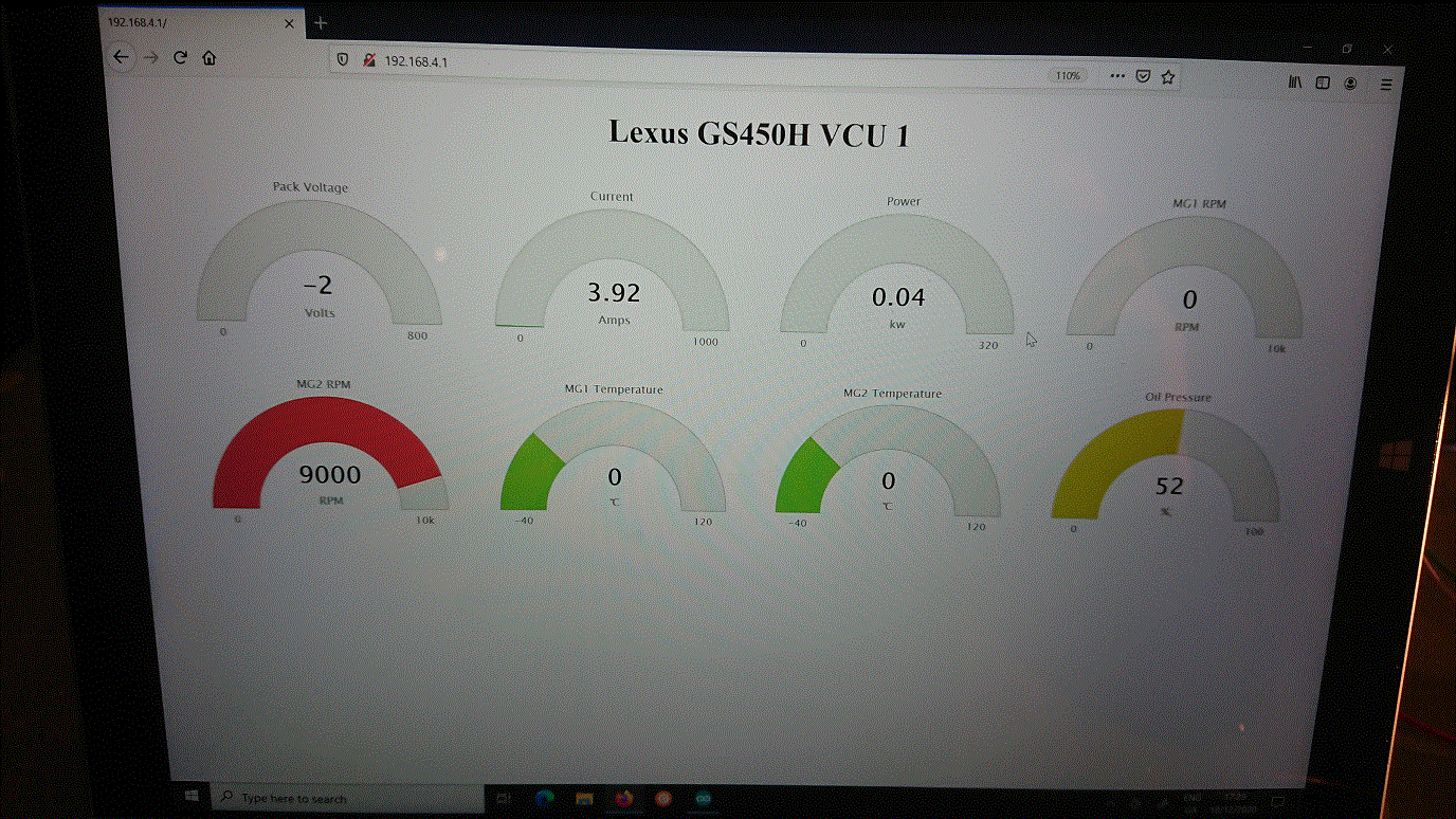 Image below shows the result. As before, mg2 rpm is not registering. I would have expected if there was a wifi issue, the other 7 values wouldn't work either!? Its as if the identifier 'n' for mg2 rpm is not registering with the GS450H wifi dashboard. Is it possible I could have messed up the dashboard, doesn't look like it?