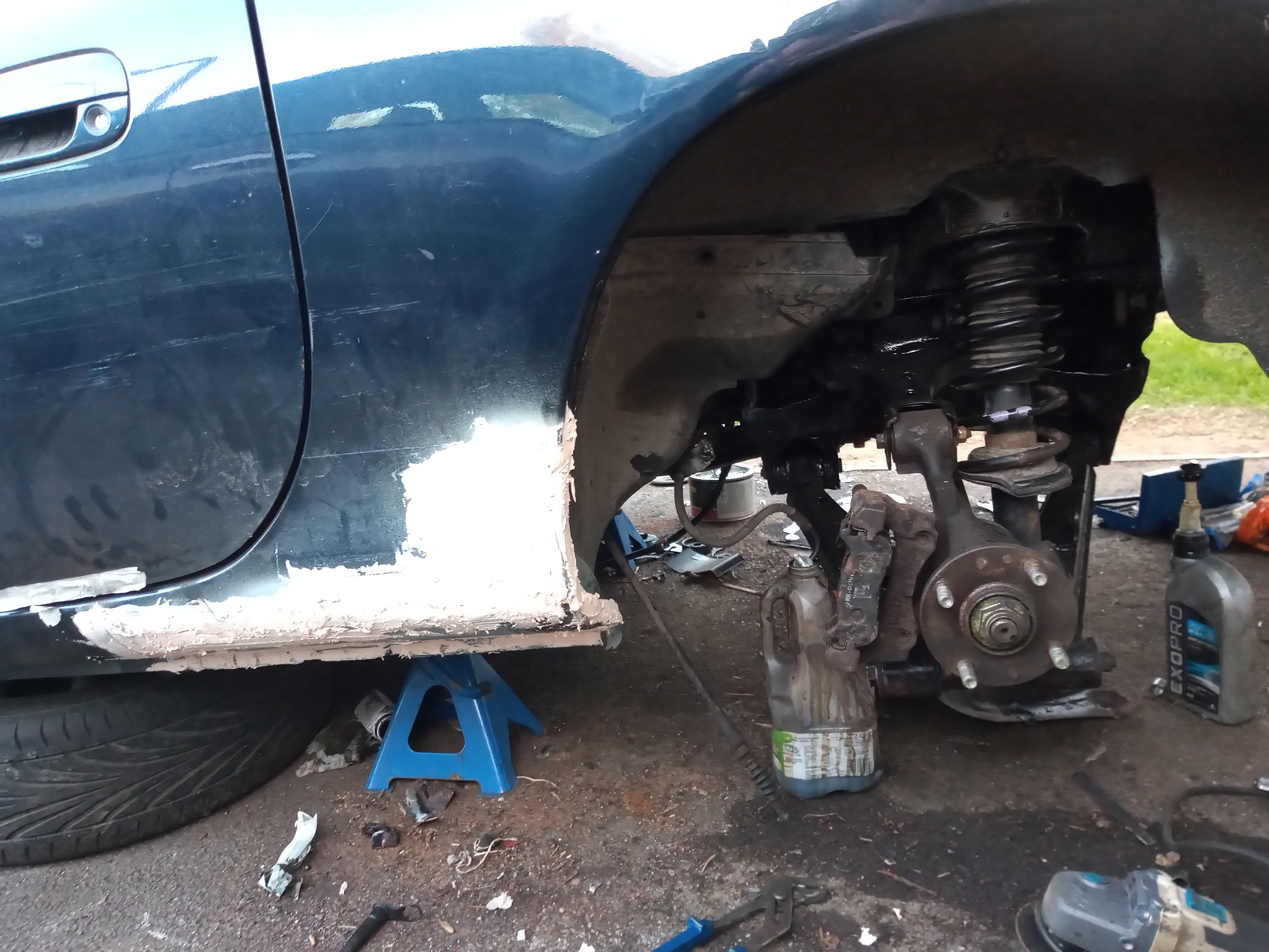 Then the really fun/controversial part trying to get the modules out! What I found that worked was to use a strap to lift the outer side up, jammed a wooden mallet underneath, this allowed me access to the bolts that connect the module to module HV strap (& BMS connector) so they can be removed therefore allowing the modules to be lifted vertically (once the wooden mallet was removed).