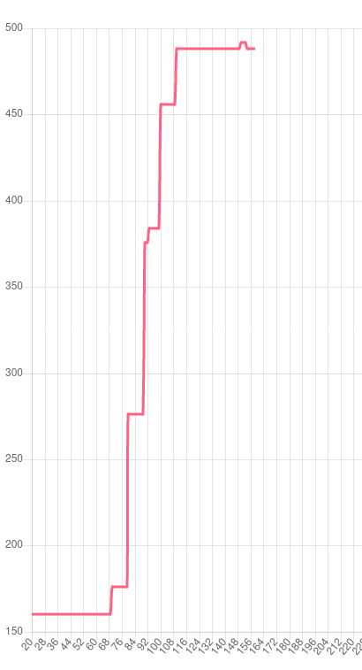 ADC is run in manual mode, i.e. no automatic channel sequencing. To select that, 4096 is sent via 16 bit SPI transfer. To read channel 5 (DC link voltage) we also have to set bits 9 and 7, so we send 4096+512+128=4736. The ADC then returns 5 << 12 (the channel number) and the 12-bit conversion result. So we just use a 0xFFF mask to get rid of the channel number and we have our result. Below you see me sweeping from 10 to 30V. 10V is represented as 160 digits.