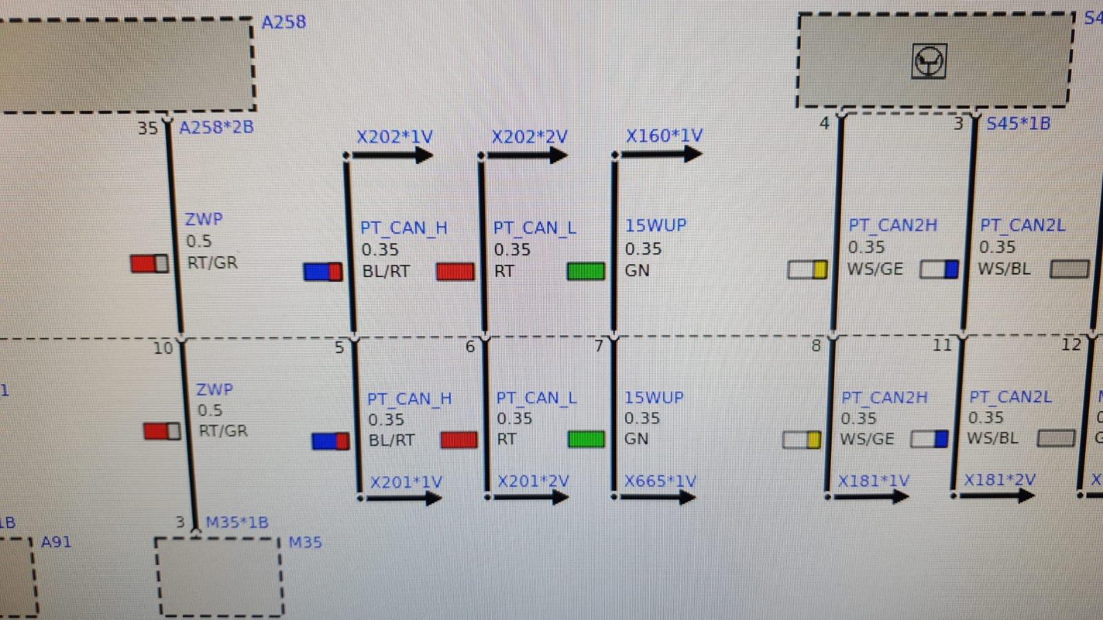 Update 2 : Wire colours. RED=PT-CAN-L , Blue/RED = PT-CAN-H