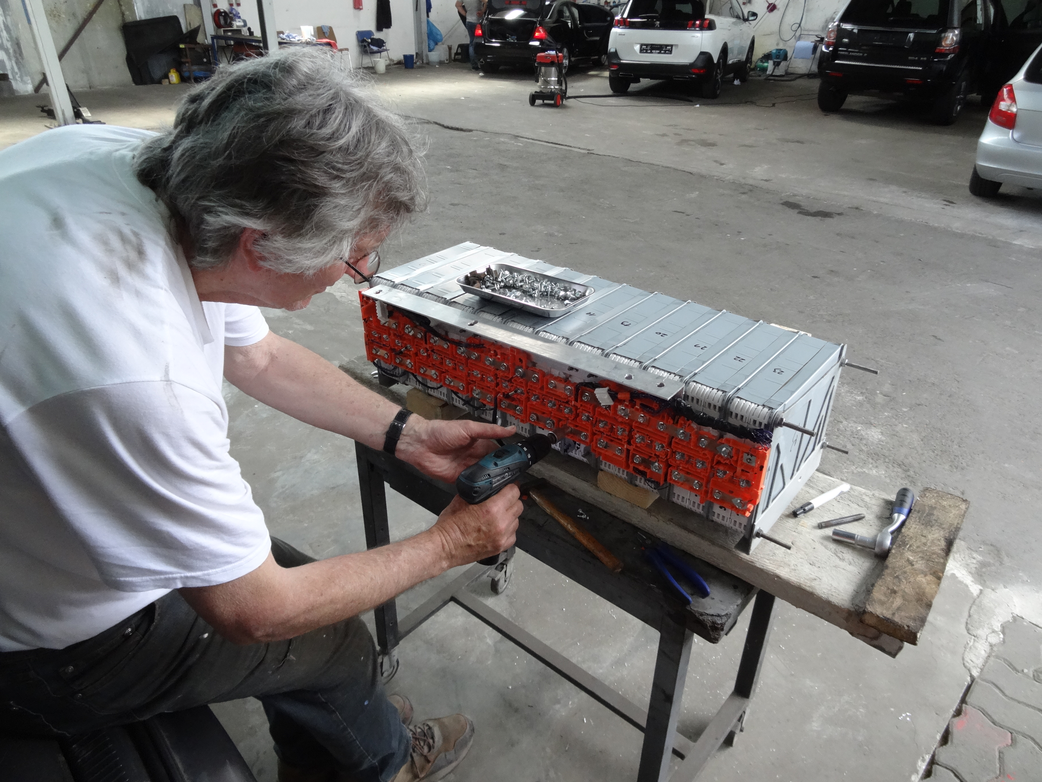 First day in the workshop today. We removed the 24 kWh battery and disassembled it. Unfortunately one pole broke but I think the electric connection is still ok.