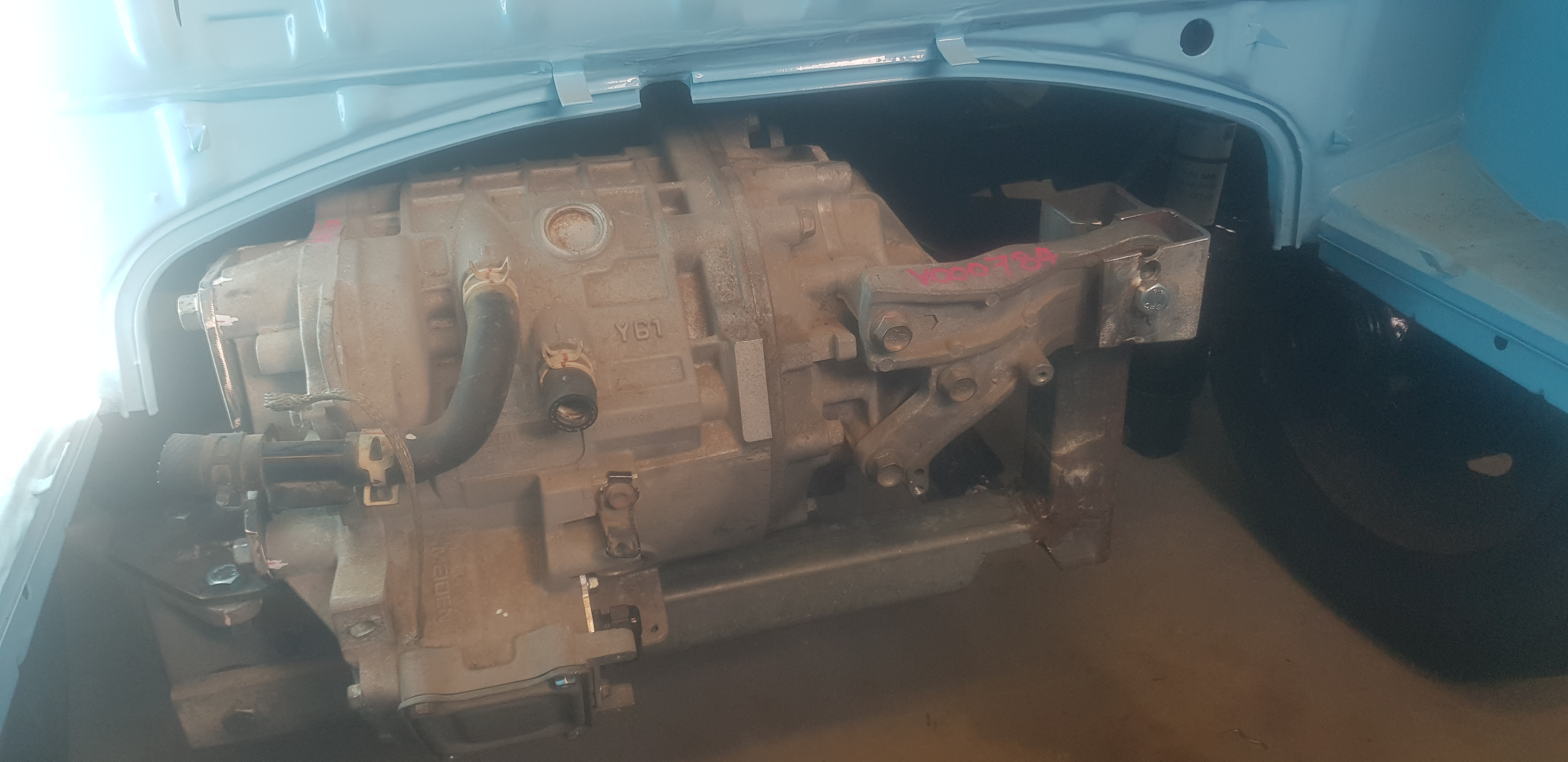 No electrical progress but confirmation that the motor fits neatly in the back of a 72 Super Beetle. Fixed to original VW mounts with no structural changes. Should be plenty of room for an inverter etc.