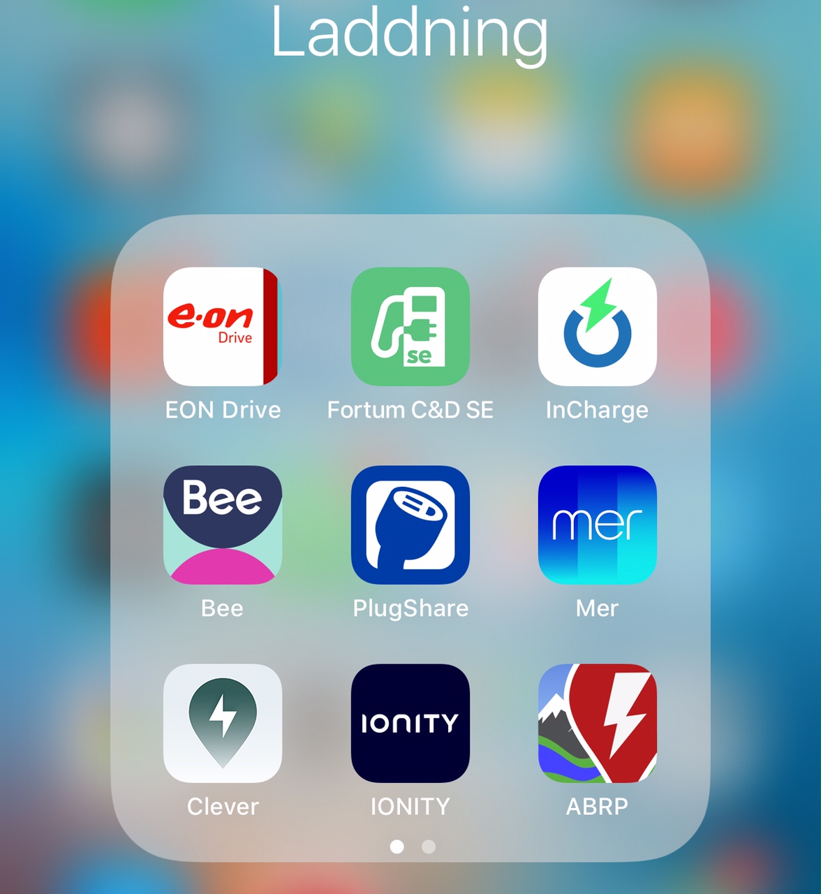 I mostly used the Mer app. The Vattenfall app (InCharge) offers the best rates but crashed frequently so I avoided those chargers. In the end I couldn't even add my credit card anymore. Had also installed the Fortum app but never used that either as I couldn't add a payment method. In Jämtland most chargers used the easypark app at a hefty 5 SEK/kWh. One EON charger required navigating to some website, entering credit card and start charging from there.