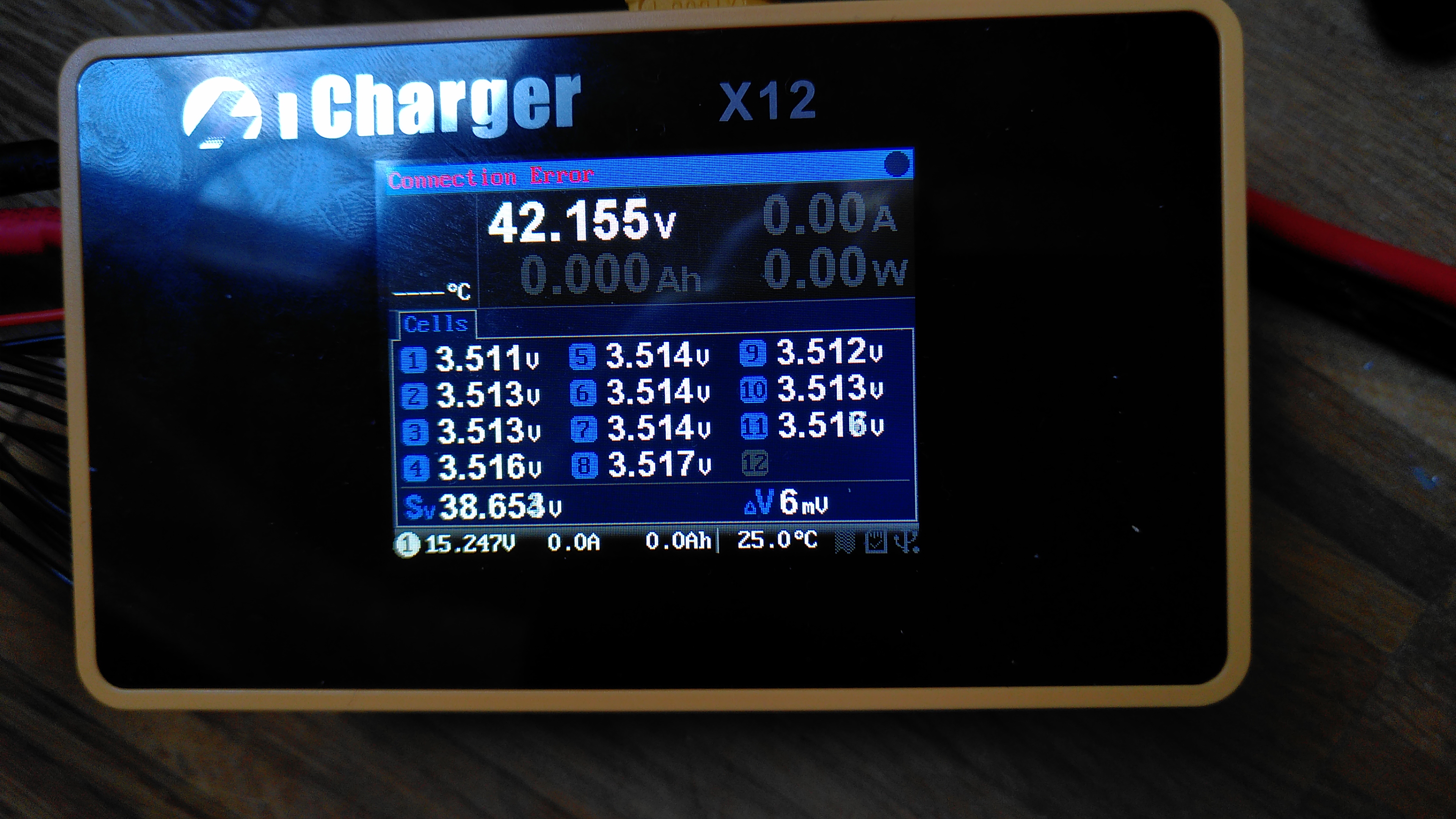 So I selected arbitrarily one of the possible two pins on each side of the row and connected a balancer. Since all voltages were visible, I started balancing. But it worked for some seconds only. Then cell 12 was disconnected. The used pin for plus pole of cell 12 is dead now. What could have happened here? Should I just try the other pin, where plus of cell 12 is connected?