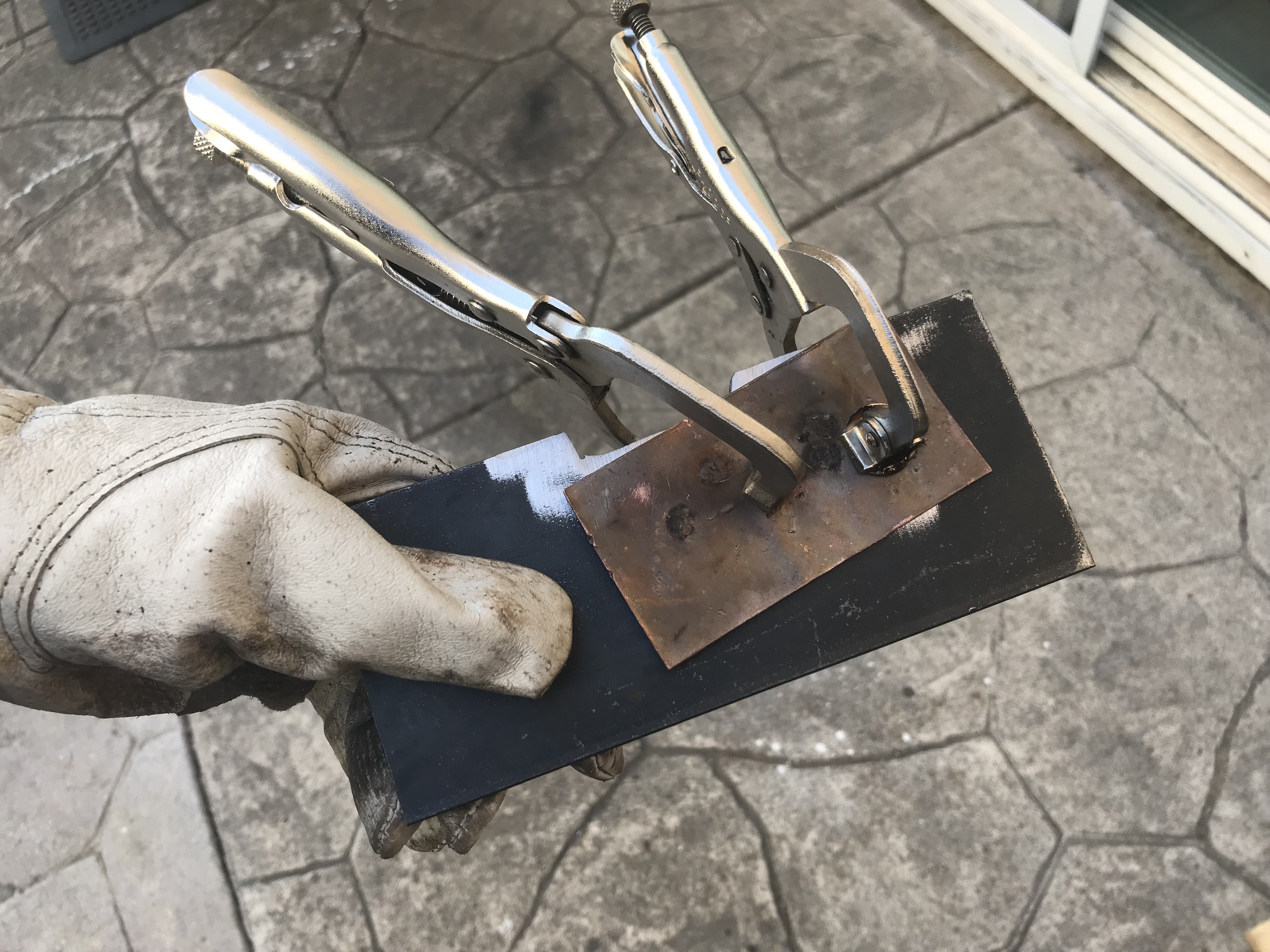 top tip on fillin in them holes, anything bigger than tiny I like to use some backing plate on it, this is a flattened out piece of copper pipe you can source at your local plumbing supply, works great as the filer rod won't stick to it
