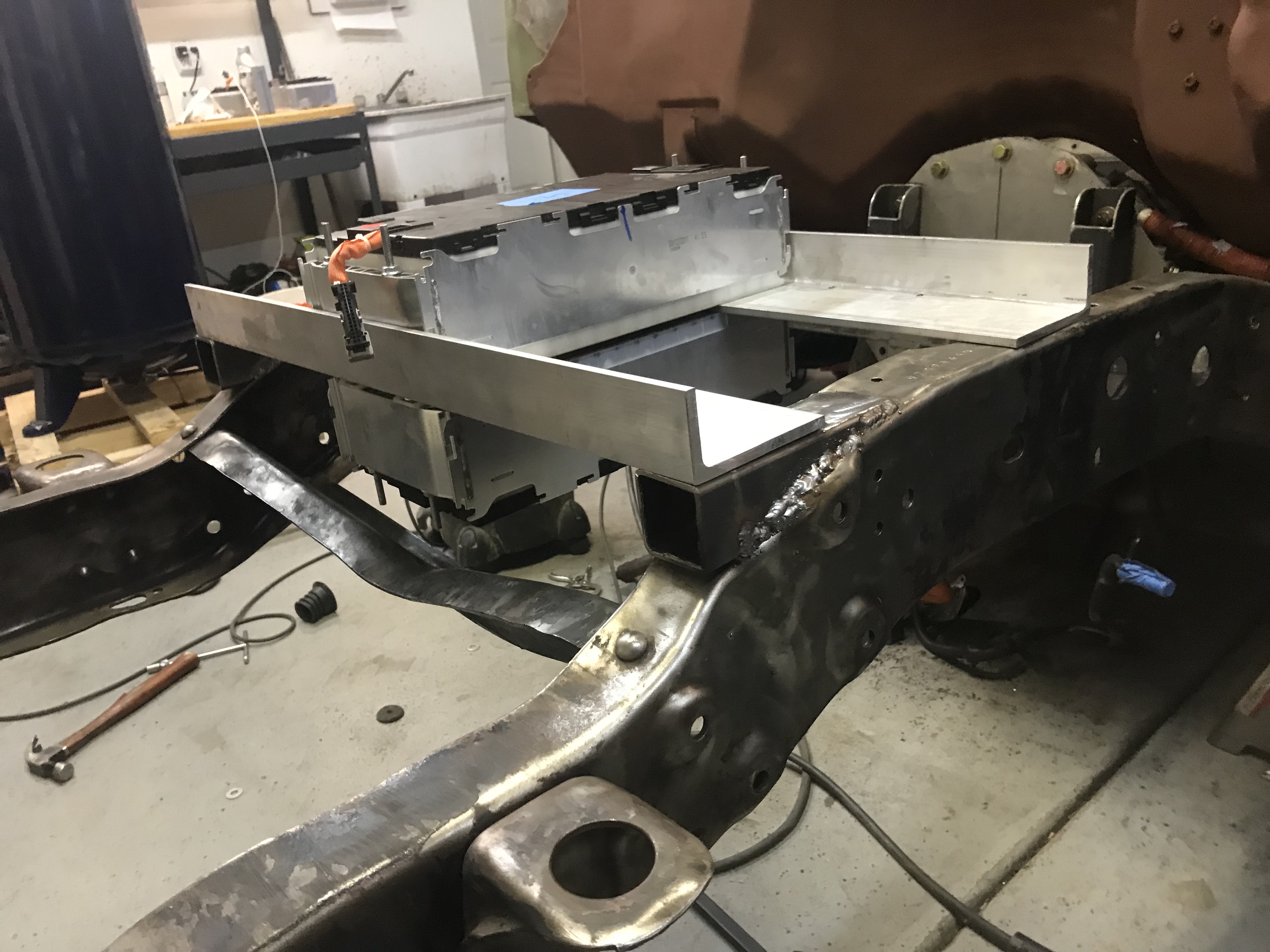 so here's a peak looksee what we are going for, I don't even know if that Tesla Model 3 battery charger / DC-DC converter combo unit [ahem, sorry Power Conversion System, PCS] is laying on there right side up or upside down, (you tell me, ha ha)