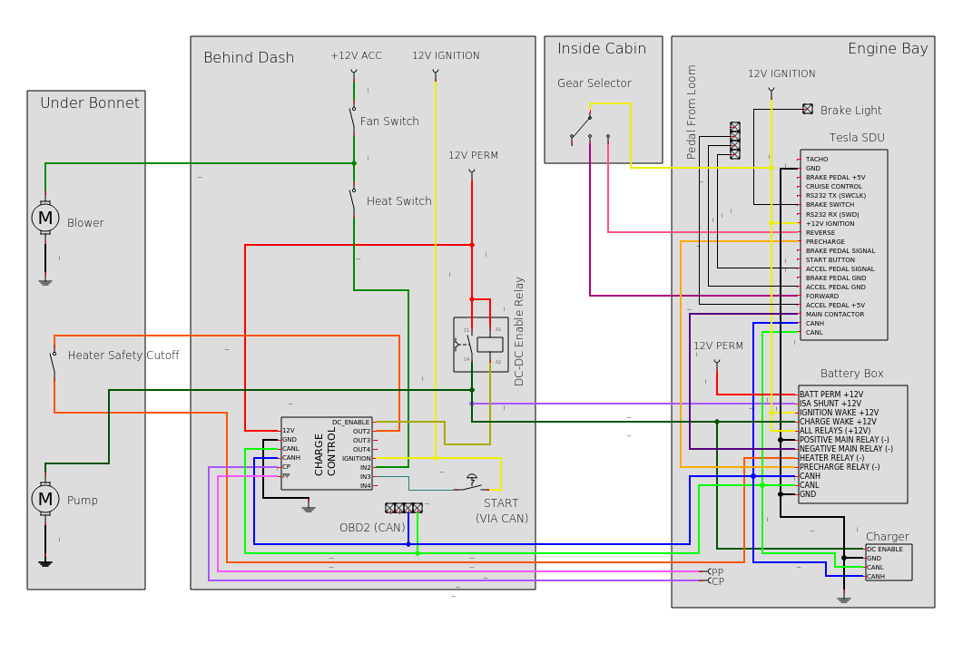 Just wanted to do a small post about my plans for low voltage cabling. Luckily I am able to use the huge majority of the OEM wiring, just got to add new wiring for CAN, HV relays, gear selector, and EVSE.