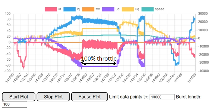 LeonB wrote: Fri May 27, 2022 4:10 pm Below is the plot recorded during self-acceleration due to FW. ud is maxed out but uq is not. It rather looks like it has a new minimum value that it can’t fall below.