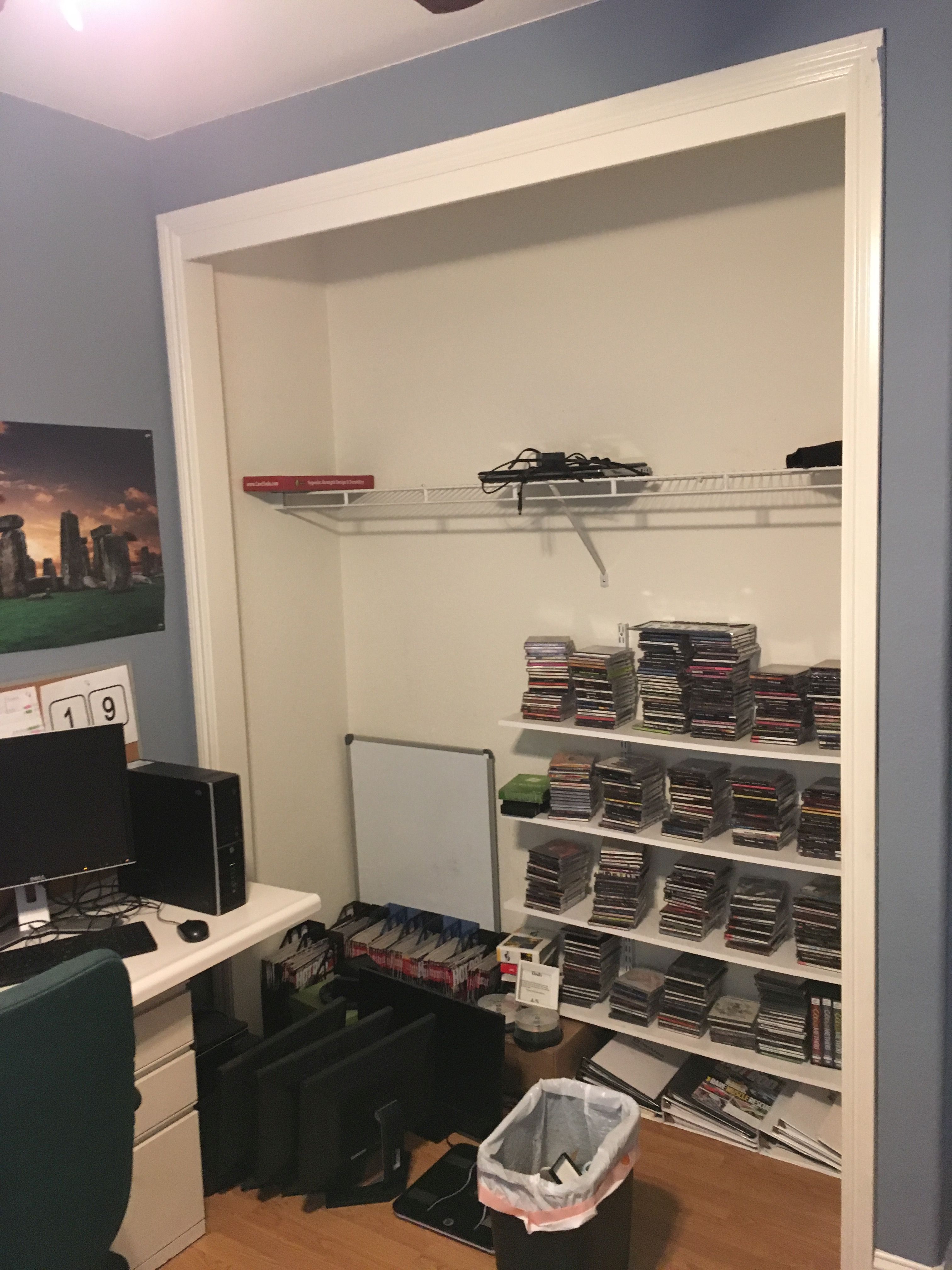 hanging your shelves in a closet backing up to a bathroom increases your chances of hitting a water pipe by 400%