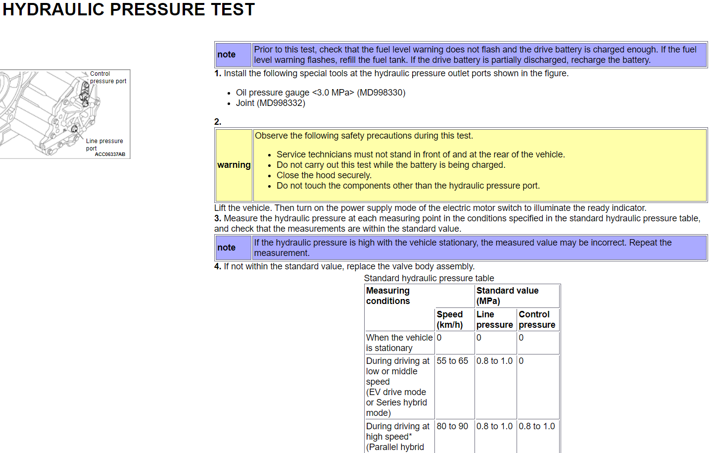 Found the clutch pressure information and where to apply external electric pump pressure: