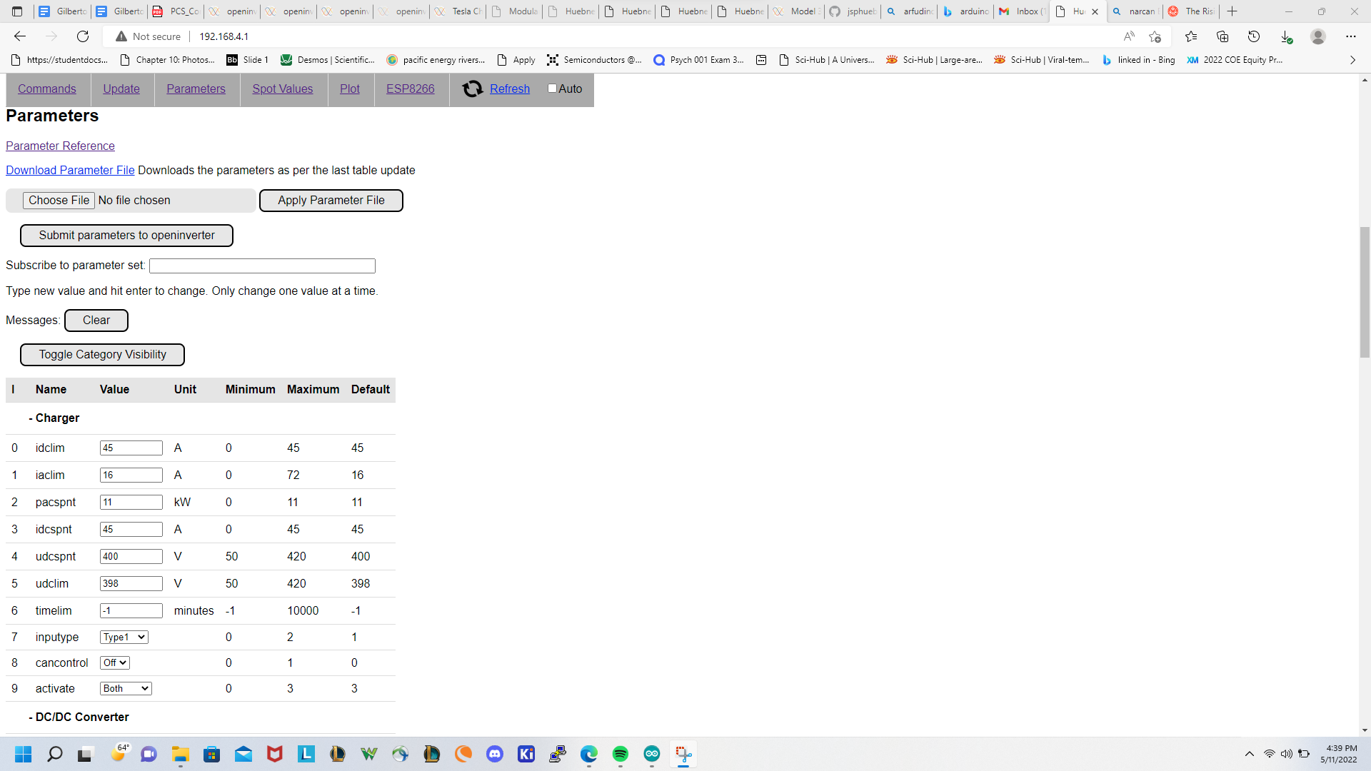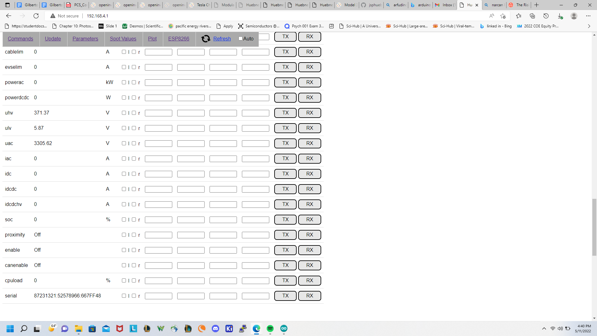 Were you able to bench test the PCS before the attaching it to the batteries? I would like to test mine as well but I am struggling with the Arduino side of things. I have downloaded the .ino file from Damien but haven’t been able to run the code bc of the dependent libraries. I have been looking all over the internet for the needed librarie but the code will not run with the libraries I have downloaded. Is there a specific place that can holds them all or does the community have a better way of finding the libraries?nkiernan wrote: ↑Tue May 25, 2021 8:22 pm PCS controller up and running and connected to web interface