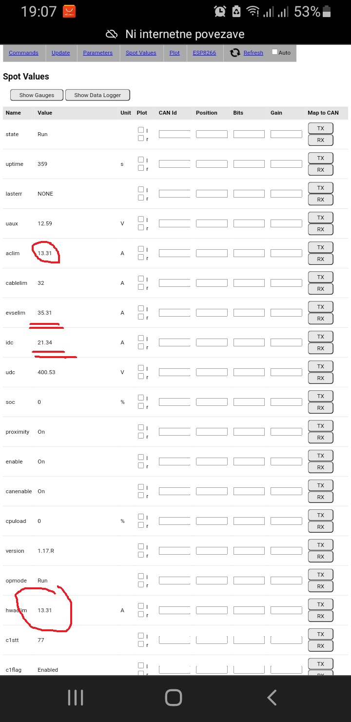 I have a task for you. Can all of you make your charger run on full power and inspect what you get returned in spot values in hwaclim value?