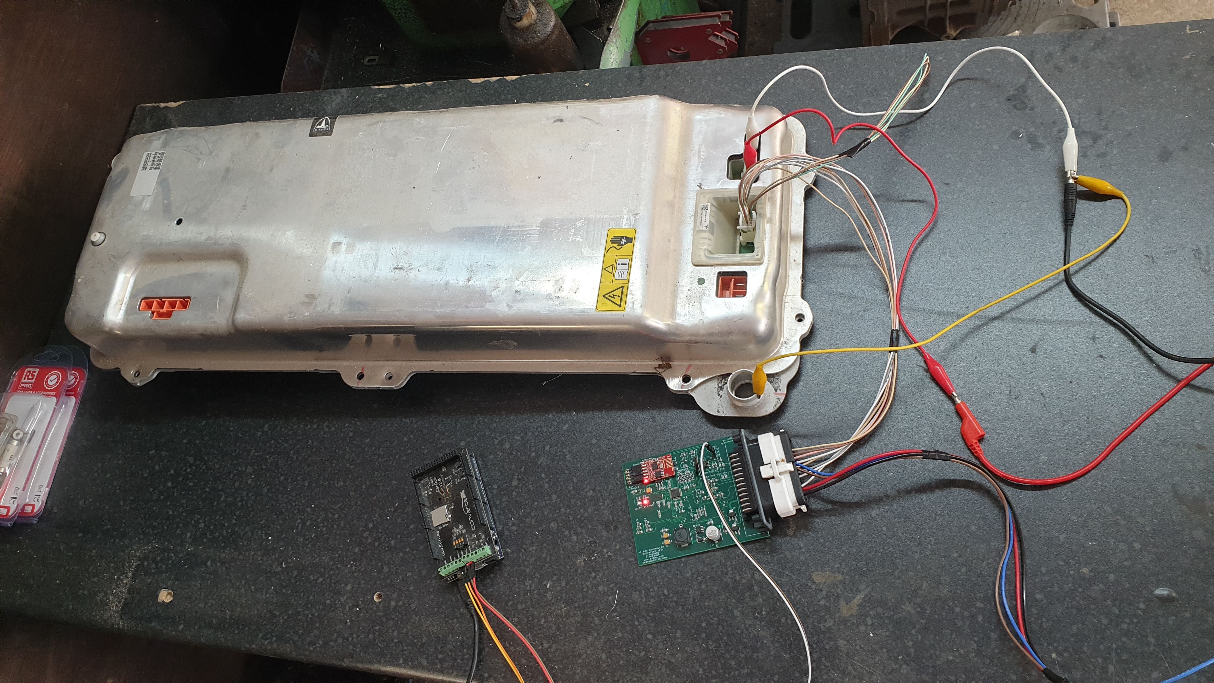 Given past experiences with Tesla chargers I would not try using the PCS with anything under 200v (250v to be safe) but I could be wrong. Finally got around to building up a controller and connecting up to my first non working PCS. Noticed the wiki page is very sparse so a few diagrams on there would help for sure. I drew out a rough diagram showing the pin assignments from the PCS data connector to the V3 controller. Perhaps someone more artistically inclined than myself could make it look nice. First order of business is a log from IPC can with just 12v connected to the pcs. No need for HV DC or AC at this point as there is no point trying to enable the unit if it is reporting faults due to CAN in the error matrix previously discussed. To that end CONN2 on the controller provides access to IPC CAN and the white and black wires in the picture can be seen connected to a logger running SavvyCAN. If anyone genuinely wants to help with the process then a log from IPC CAN under the circumstances described along with as much info about your particular PCS would be ideal.