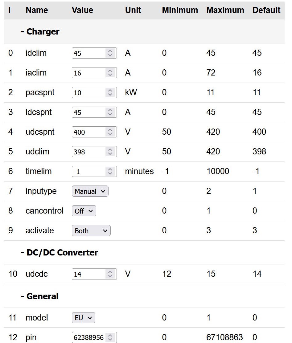 According to V3 parameters min battery is 50V. Set the max voltage for the charger to a conservative lower number this is to verify the charger is functional. Once you verify that it functions as intended, set the normal charge voltage. Remember to "save to flash" with each parameter change.