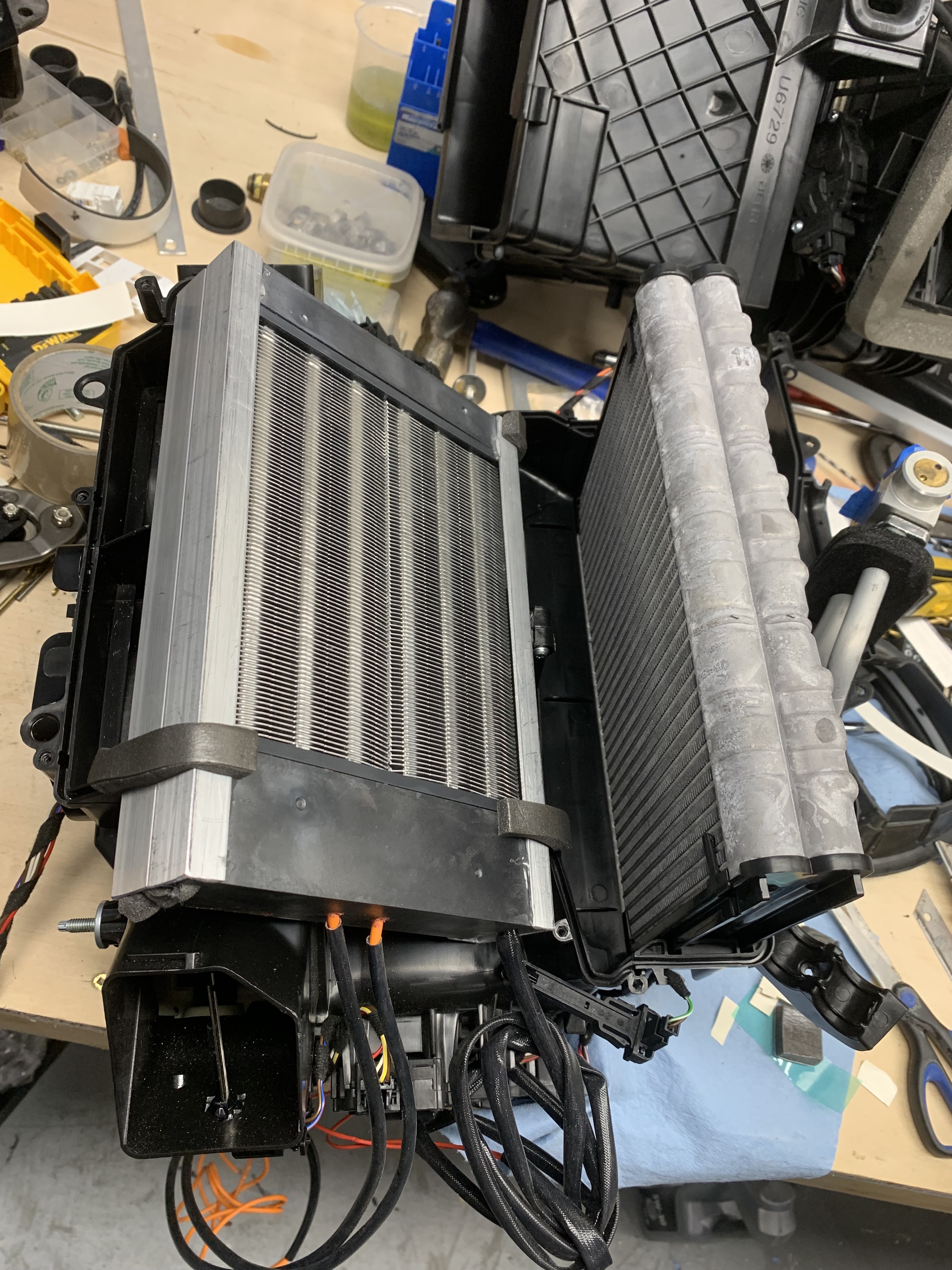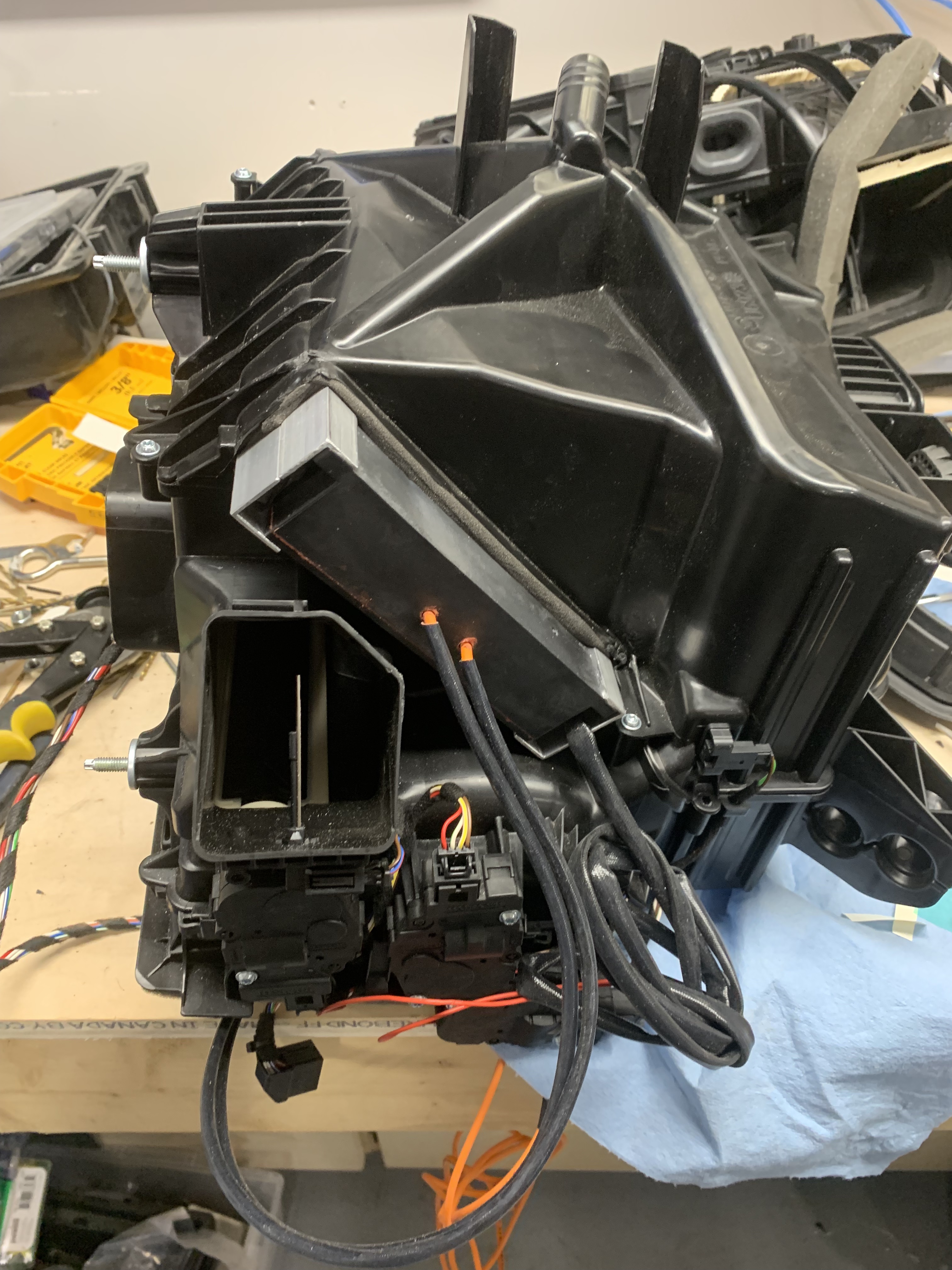 The 3kw PTC heater has been fitted to the HVAC box.