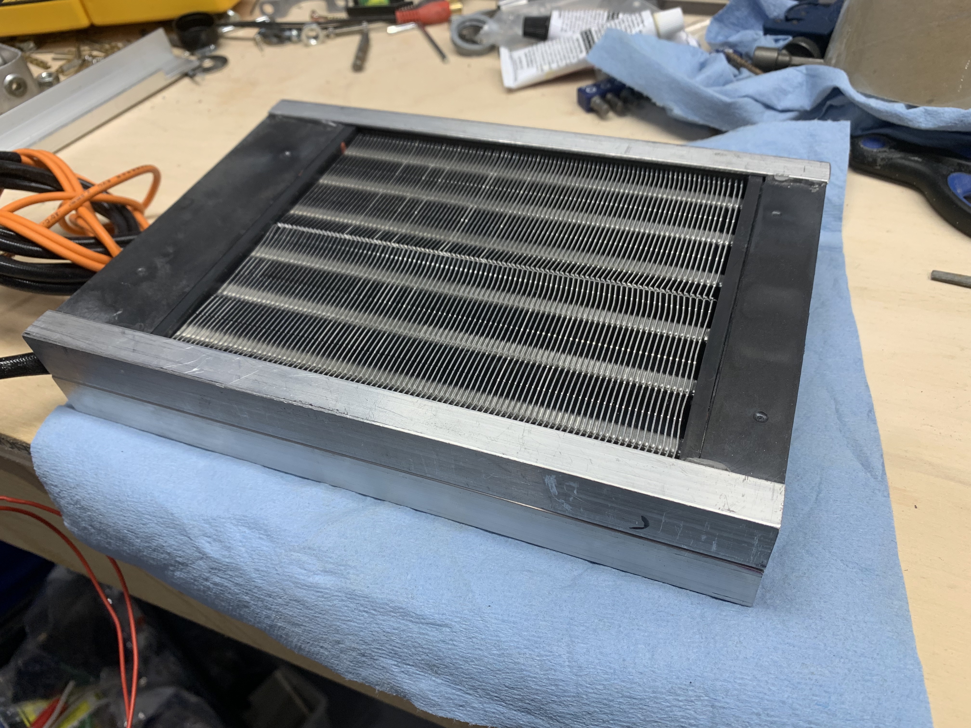 The PTC heater was sourced from ZeroEV and then aluminum was epoxied onto the outer edges to allow for a foam seal.