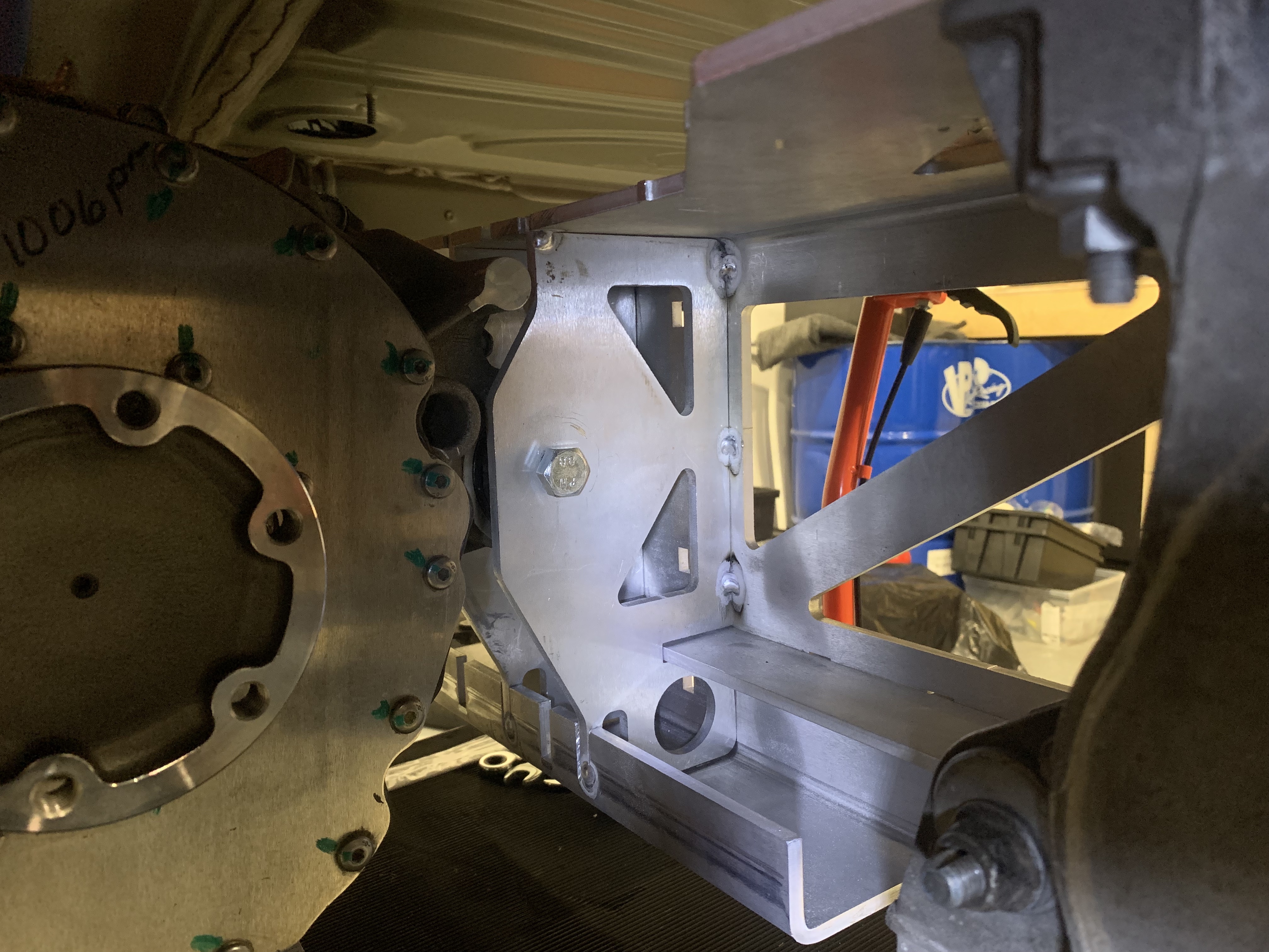 Rear mount is fabricated with the help of SendCutSend, It mounts onto the transmission mounts of the rear subframe.