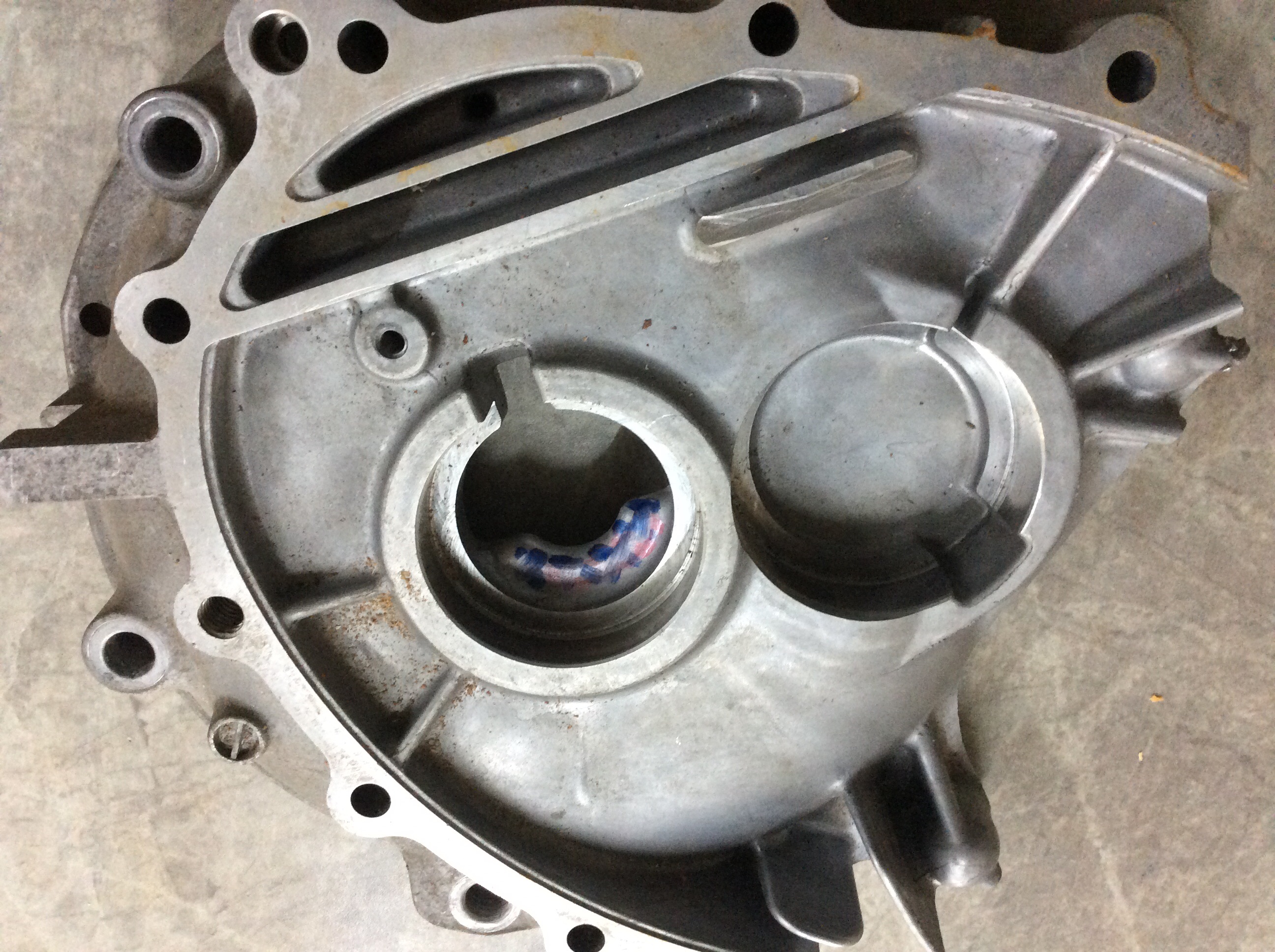 If it proves to have been a been said failure then the cross hatched section in the pic will be removed and a suitable sealed bearing sourced to replace the original which had an open race which would have been lubricated via the gearbox.