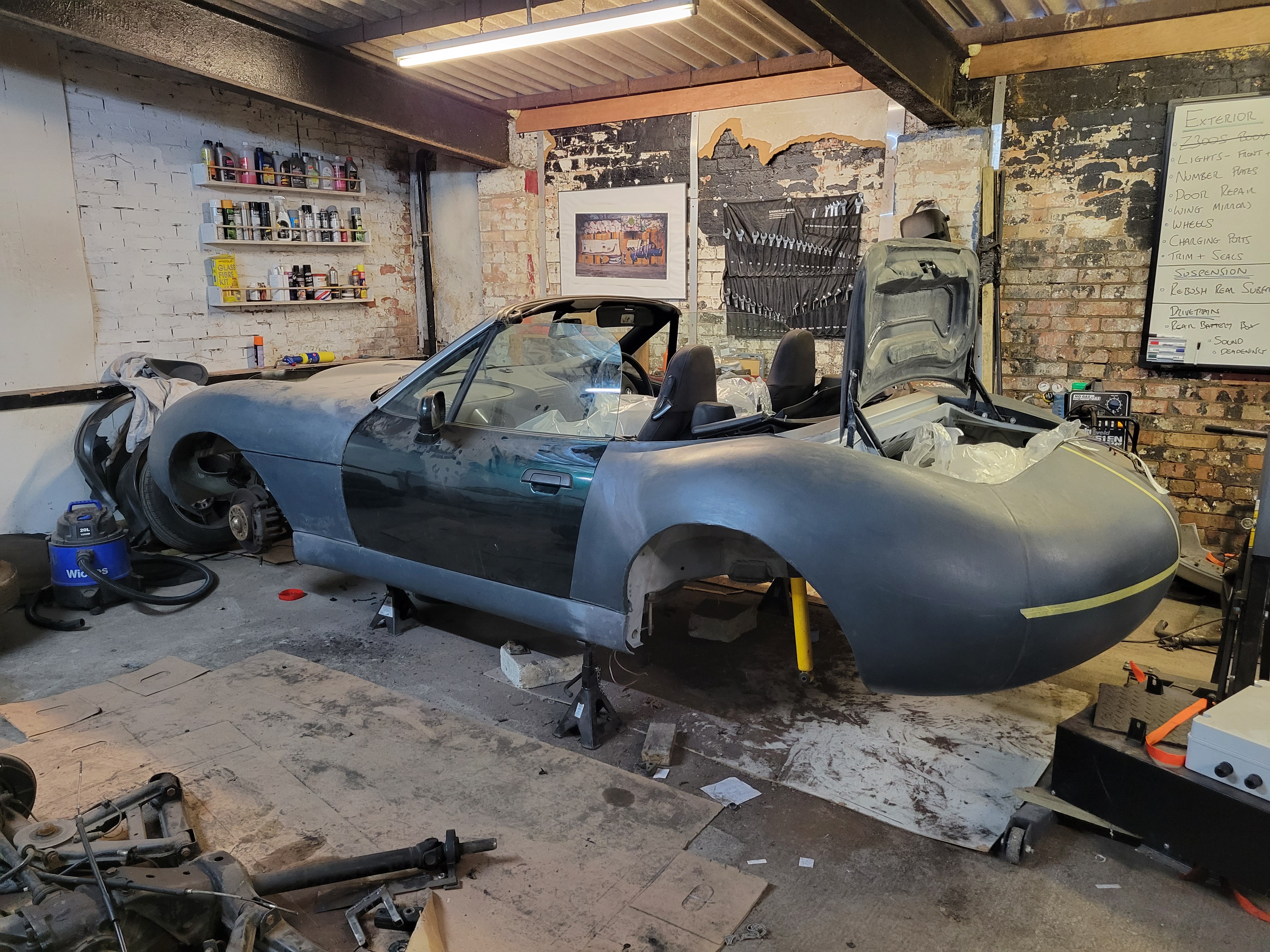 Working on the cosmetics (at last). Lots of progress on the body swap. Headlights half fitted. Now designing the rear end layout.