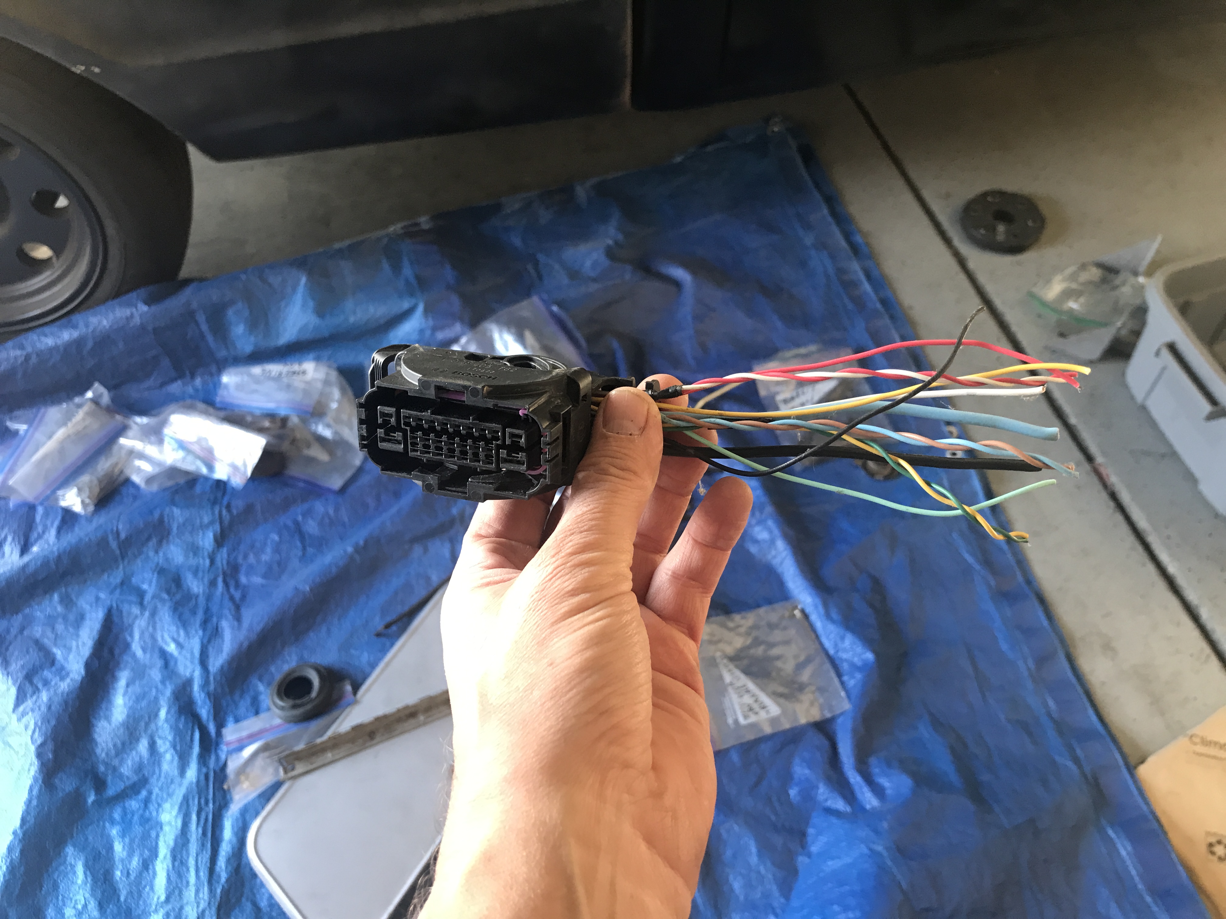 however BOSCH goes out of their way to make a connector so encapsulated that no one can tell which wire goes to where, so The Greg (and don't ask me how I did it) had to liberate the cover off of it to take a peek looksie inside