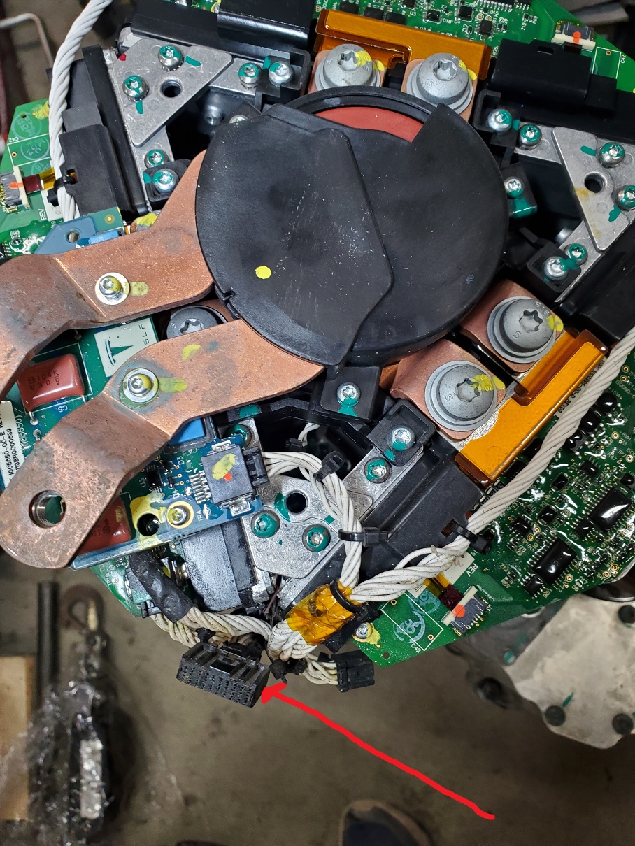 This connector has pins for lots of things. Most of these go to other parts of the vehicle (gear selector, throttle, power, etc), but you will find that 4 of the pins need to go to the motor encoder. This is a 4-pin connector somewhere else on the LDU which has to connect back to the logic board.