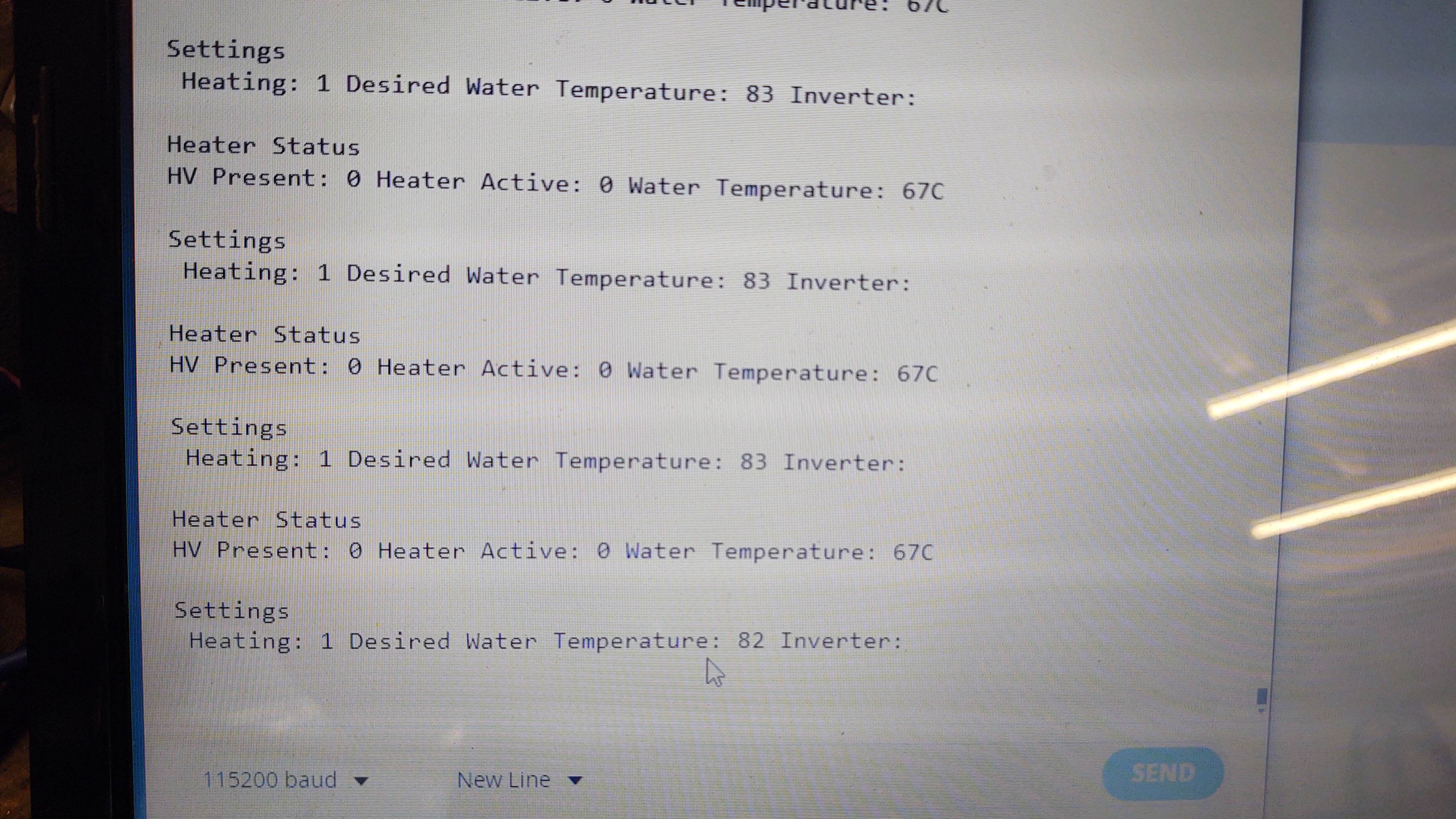 Serial.println("Heater Status");