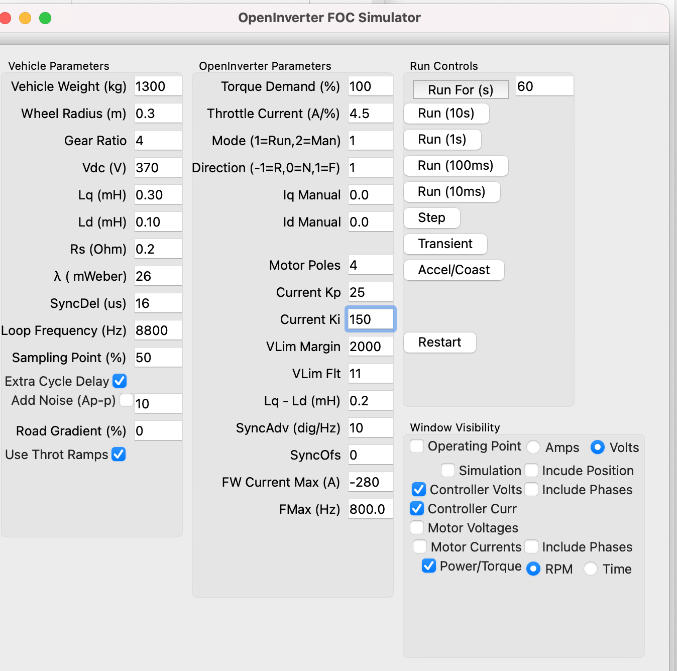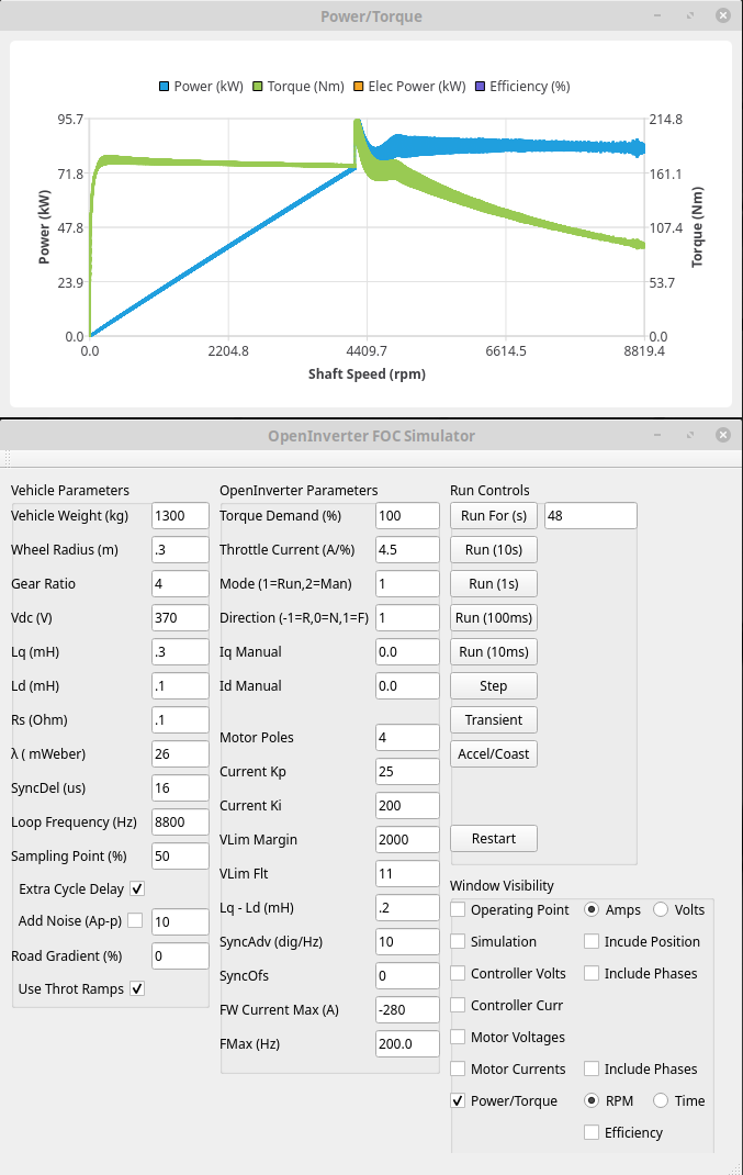 Also just started another thread (viewtopic.php?t=3047). Might have a way of calculating Lq, Ld and flux linkage from web browser csv files (talked about doing it from binary logs before in this thread). Decided not to integrate it into the simulator so it is in a new thread instead.