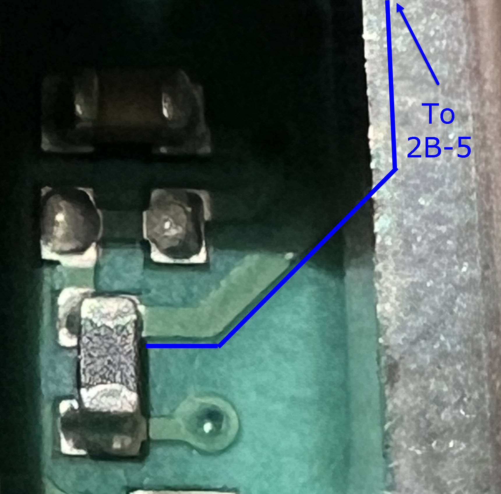 That may not be the case. Here's a close-up of 2B-5's trace termination:muehlpower wrote: ↑Sat Jan 21, 2023 12:46 pm On the BMW, pin 2B/5 is connected to GND via the shield . . .