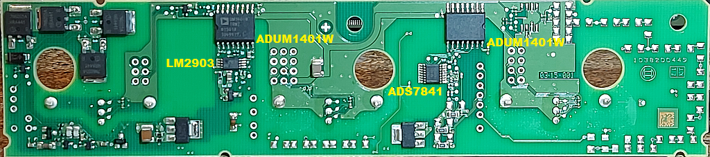 This is the other isolator which is attached to a two channel comparator, one of the channels is picking up a 793KHZ signal from somewhere and feeding it back to the mainboard. No idea what the other channel does.