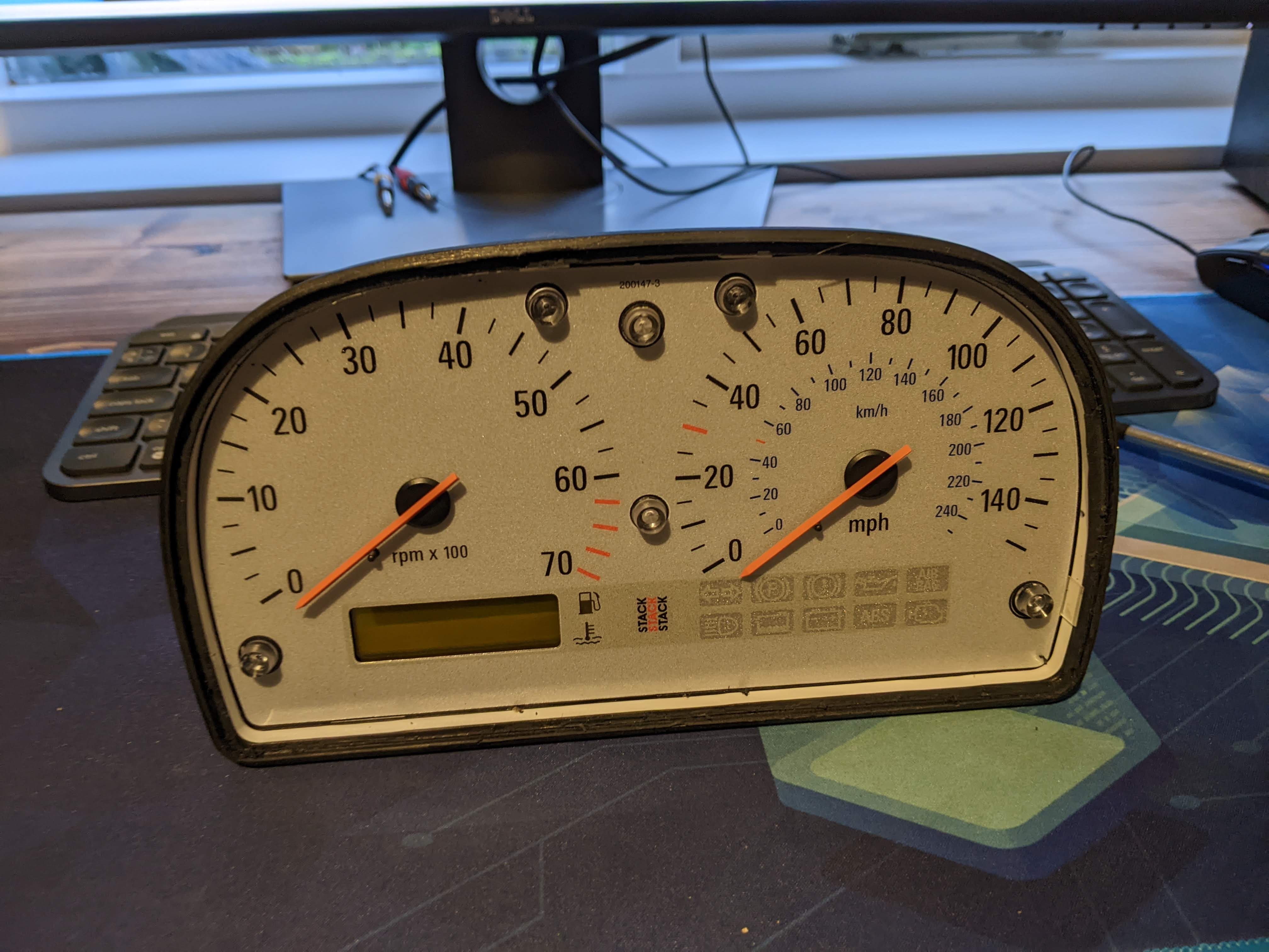 This is probably a little off-topic on this forum, but I thought I'd document my findings here. The gauge cluster is built with the following hardware: