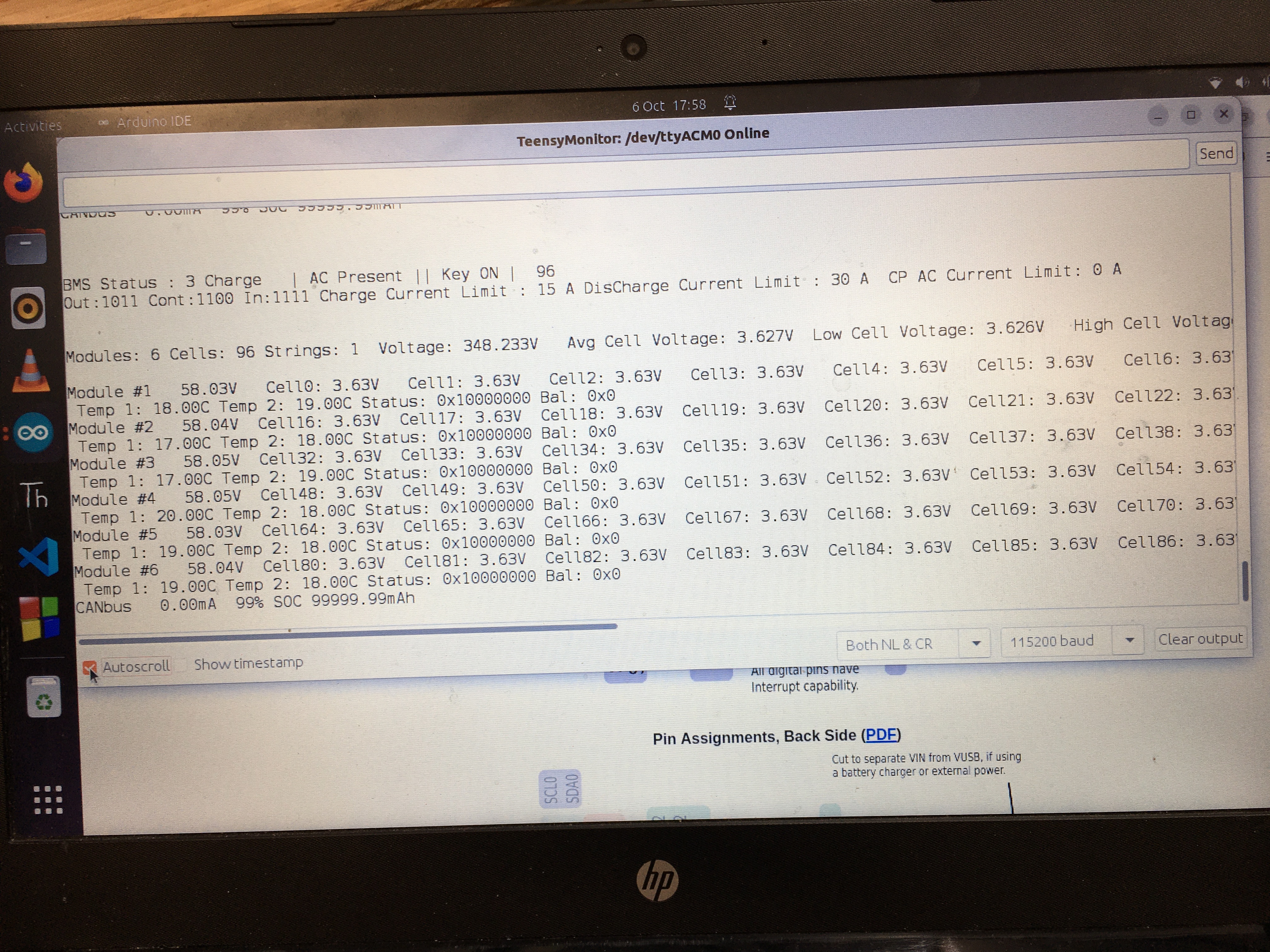 BMW 530e battery pack - all cells within a few mVs - circa 348V in total.