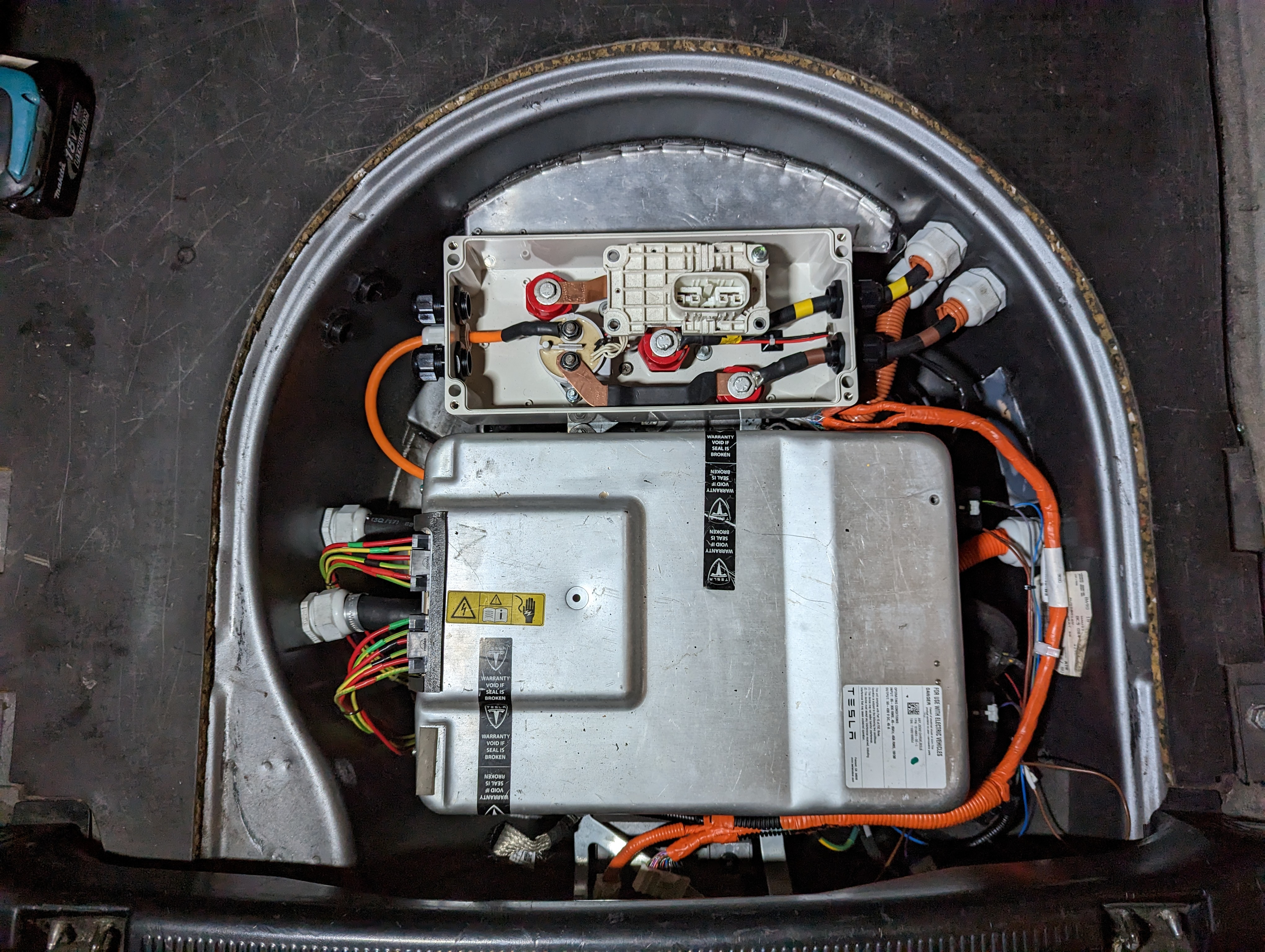 Once I knew everything fitted, it was time to install the bits and bobs including some 16sq to the other side of the charge contactor and back to B+ of the Tesla HVJB. The B- connected to the most negative of the pack, back down in the front HVJB.