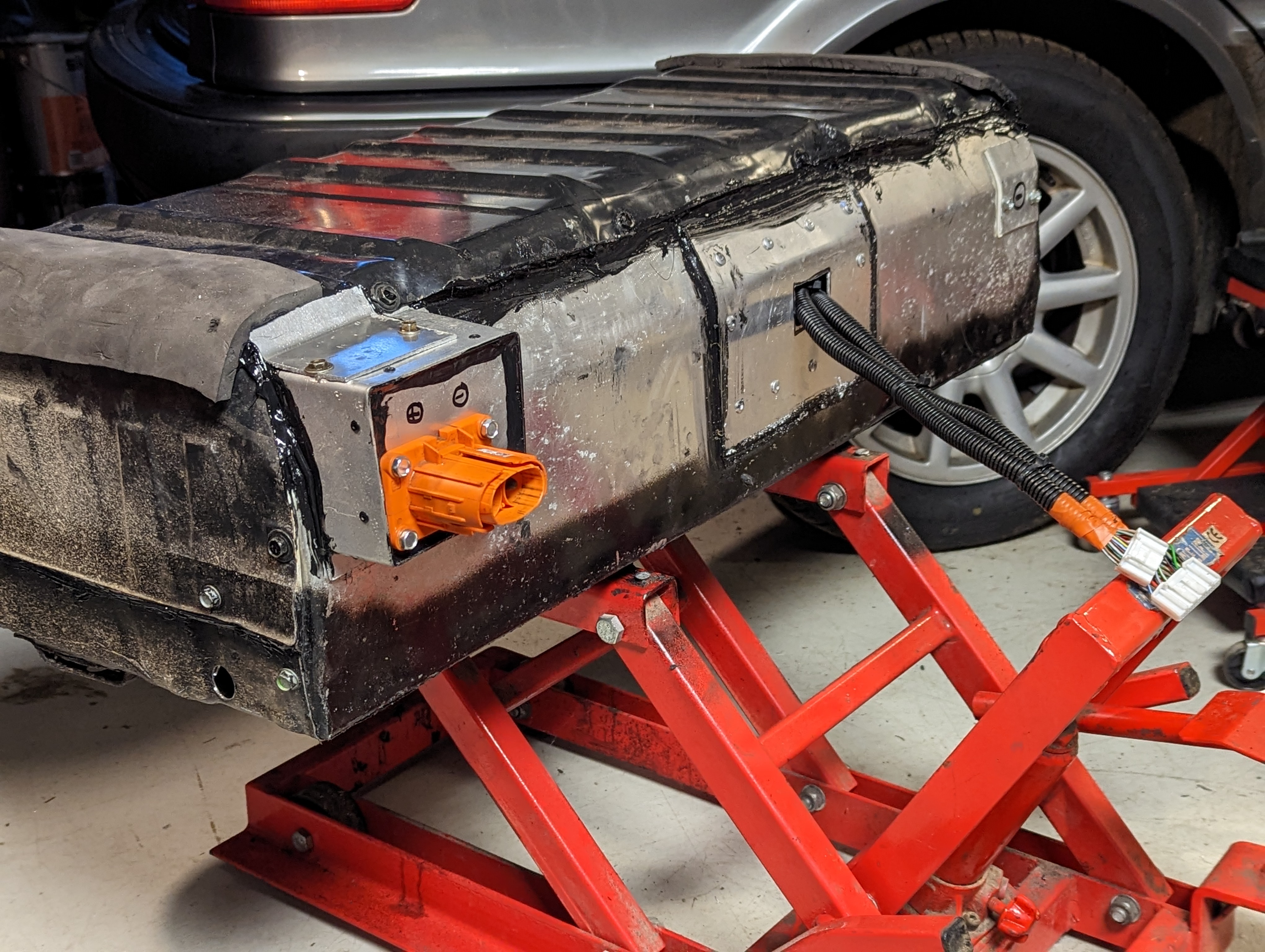 The time had come to offer up the battery again, months later. Delighted. Fits really well and the HV connector worked a treat. Once I had the lengths where I wanted them, I then was able to terminate the ends in the new HVJB in the boot and pop the lid on. Another job finished as time ticks on towards the deadline... Very much more positive now.