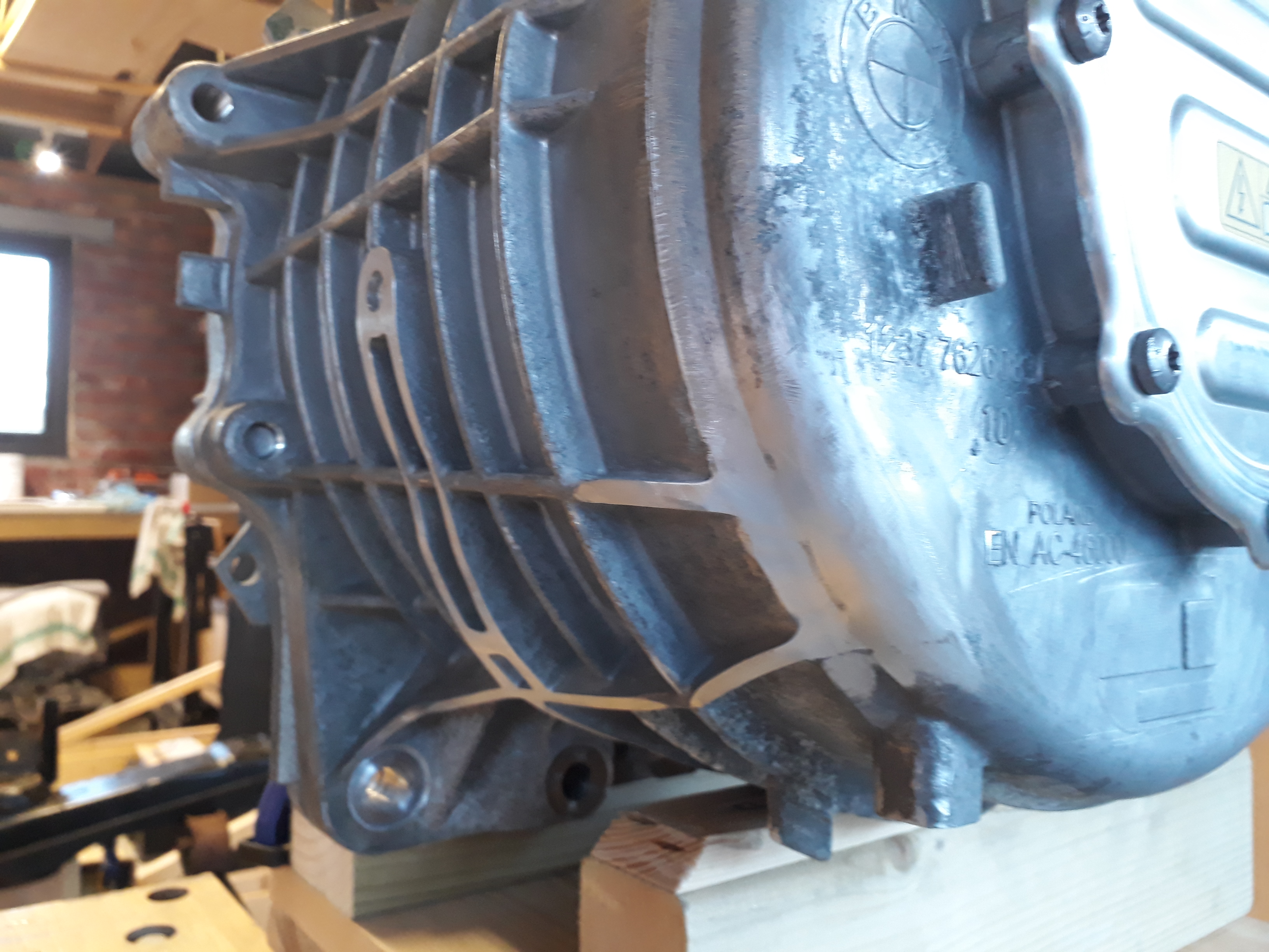 Wooden bar is a placeholder for a steel box section that will run from the rear driver side to offside engine mounts, to pick up a smaller longitudinal box section that will run to the forward engine mount and support the driver side of the motor. Have done some calcs based on the drive unit weight and max torque the tyres could transfer without slipping to size the beam, looking like 40x40mm with 2mm wall thickness.