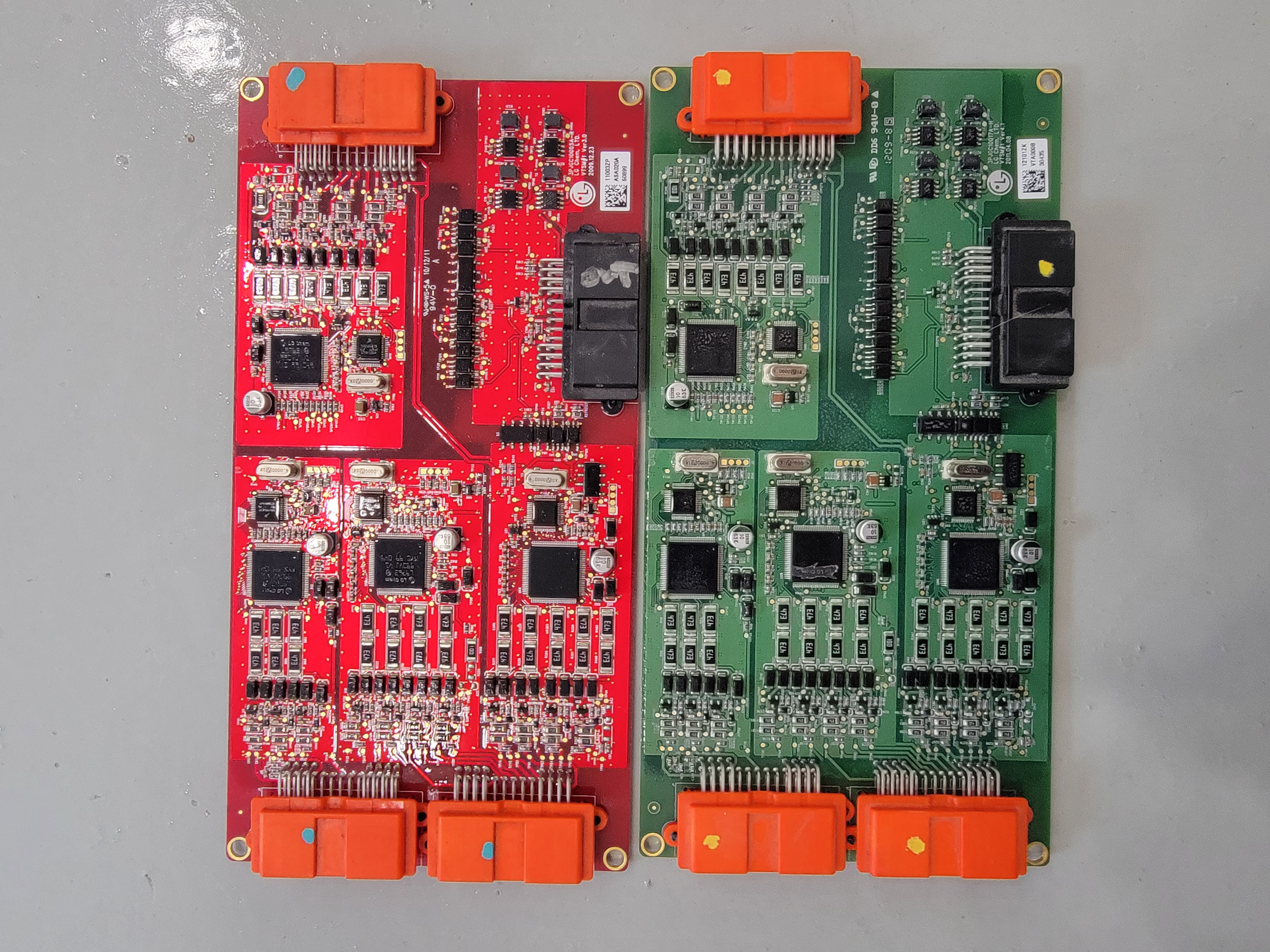 I'm not sure actually. Here's photos of the two boards. My test setup is just my VCU wired directly to 1 slave instead of the whole set of slaves so I can try 1 at a time. I have a can sniffer that says the VCU is sending the right messages. It's also reading the cell values perfectly fine from each board, but only the red board will balance.KimchiKimKim wrote: ↑Wed May 31, 2023 2:09 am Are you sure you are working with gen 2 BMS? I'm pretty sure that BMS isn't distributed. Can you add some pictures of your test setup?
