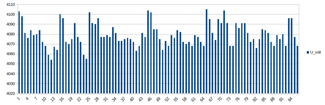 I then calculated the distance between the lowest and highest voltage. The lower the difference, the more life should be left in the cell:
