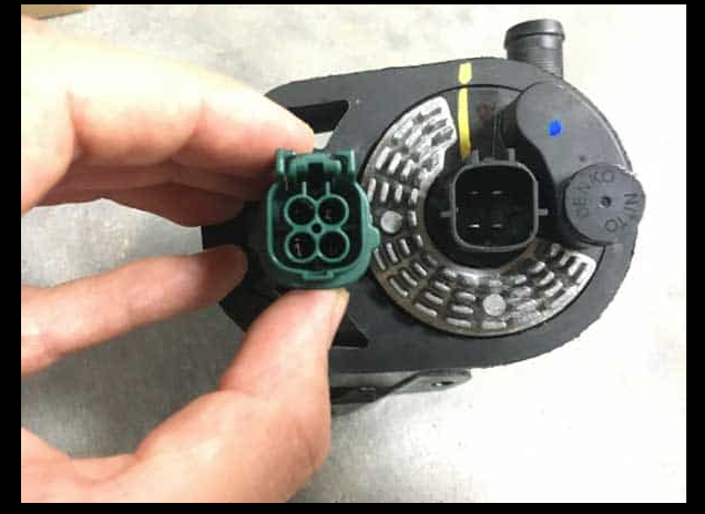This connector from Nissan fits the Tesla water pump.