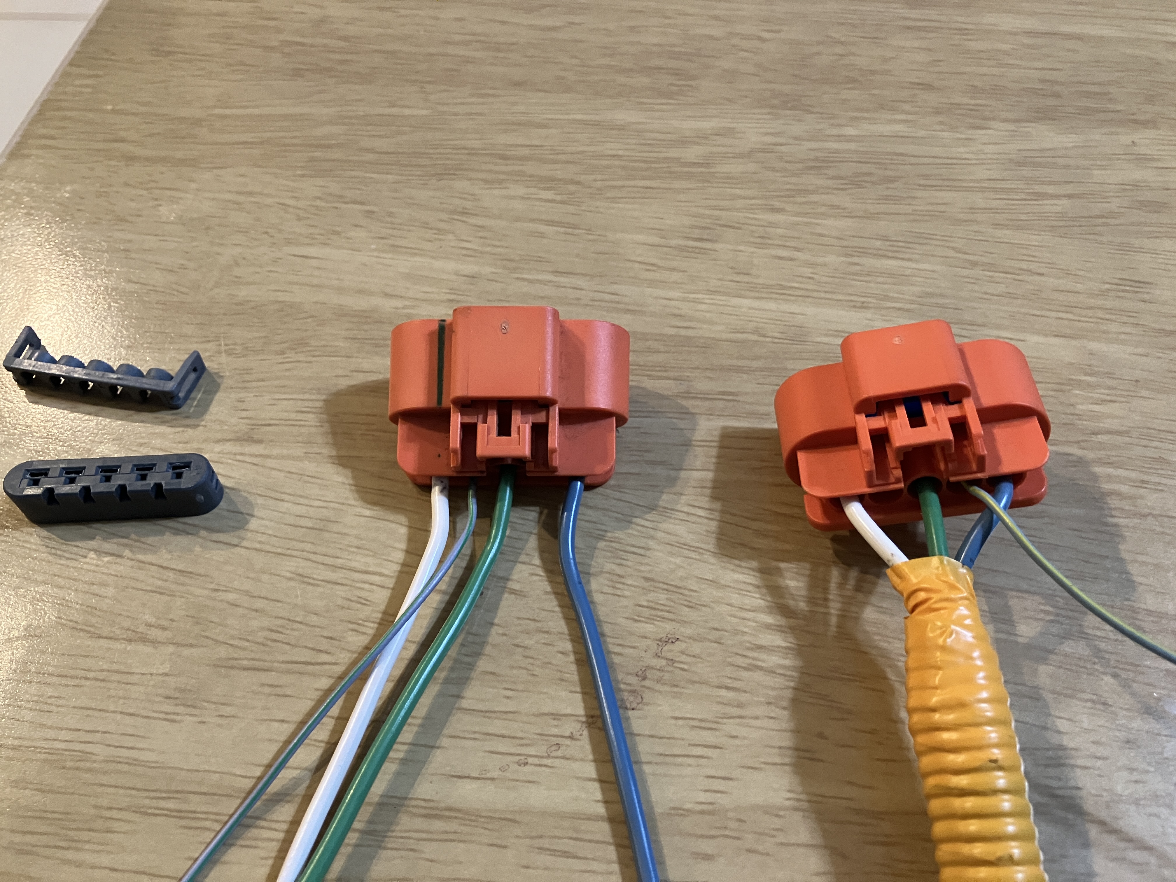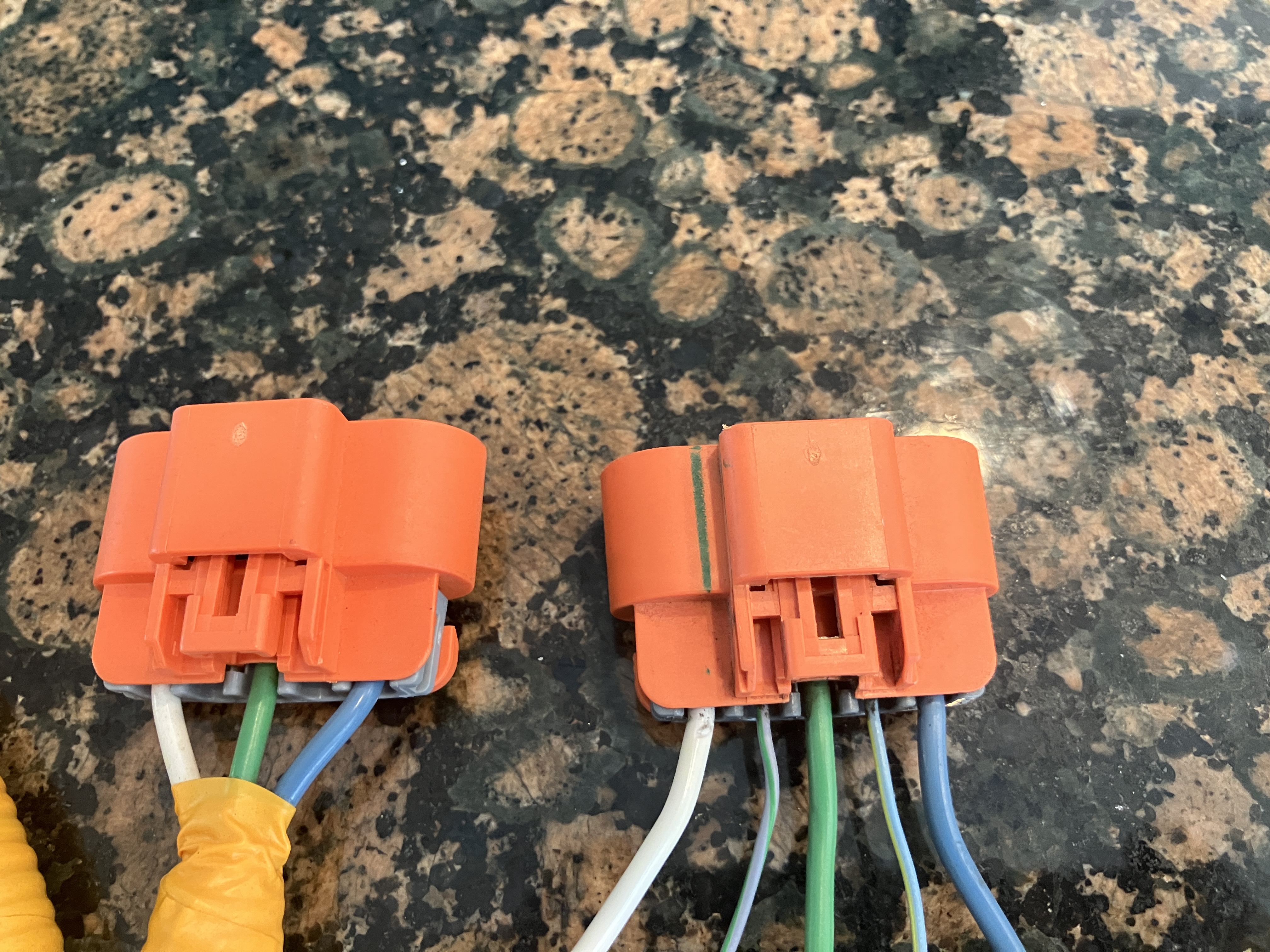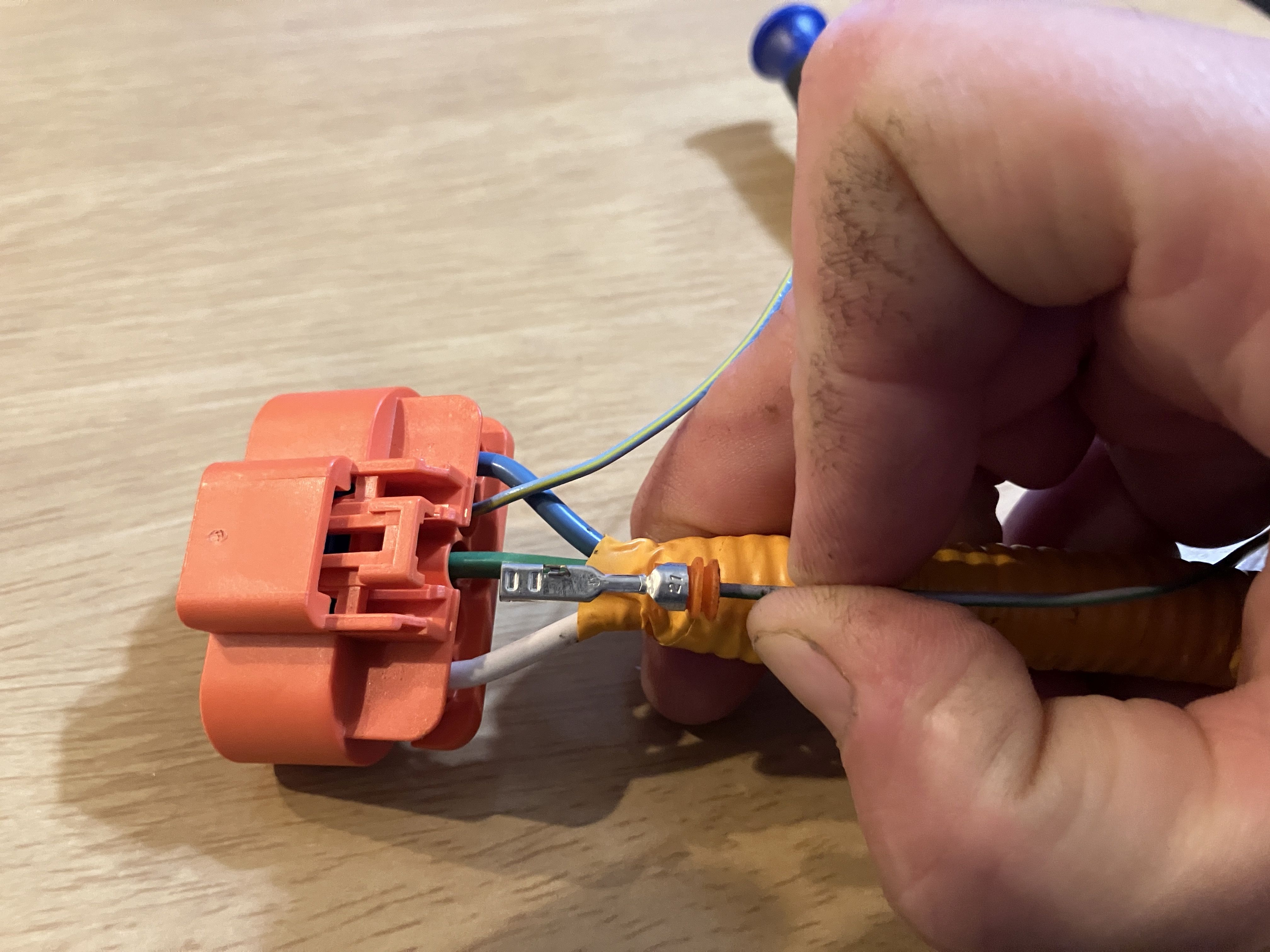 so after attempting to charge with the aftermarket three wire fire wire harness to prove to myself that it wouldn't work it couldn't possibly work, and by the way it didn't work, it was time to swapatize the proximity and control wires from the little OEM pig tail to the aftermarket wire harness