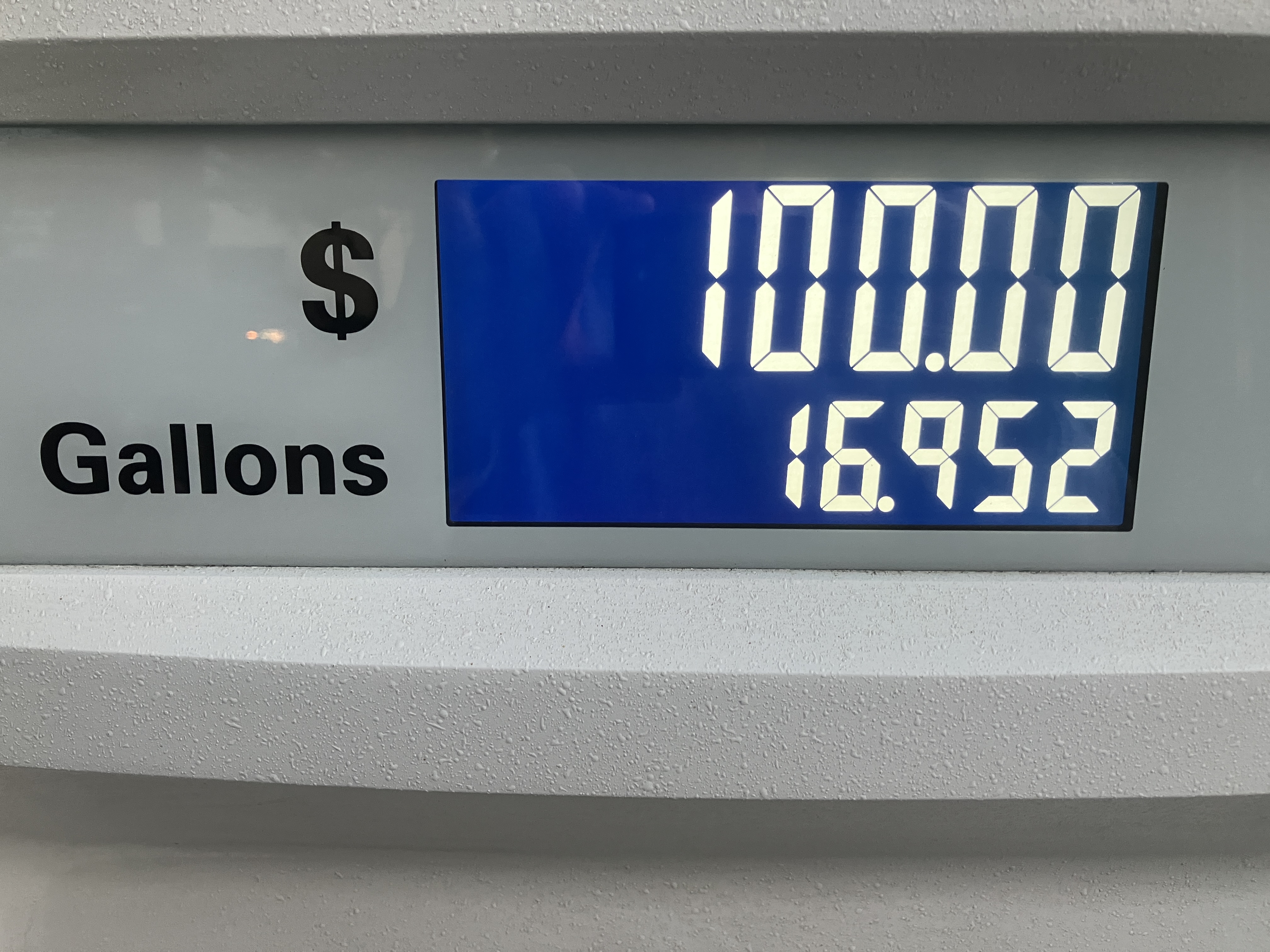 $100 bucks did not fill up our 2010 Honda Pilot 21 gallon fuel tank, the pumps are designed to STOP for security reasons at a $100 in case someone steals your card, had it kept going we would have ended up paying $124 to fill up