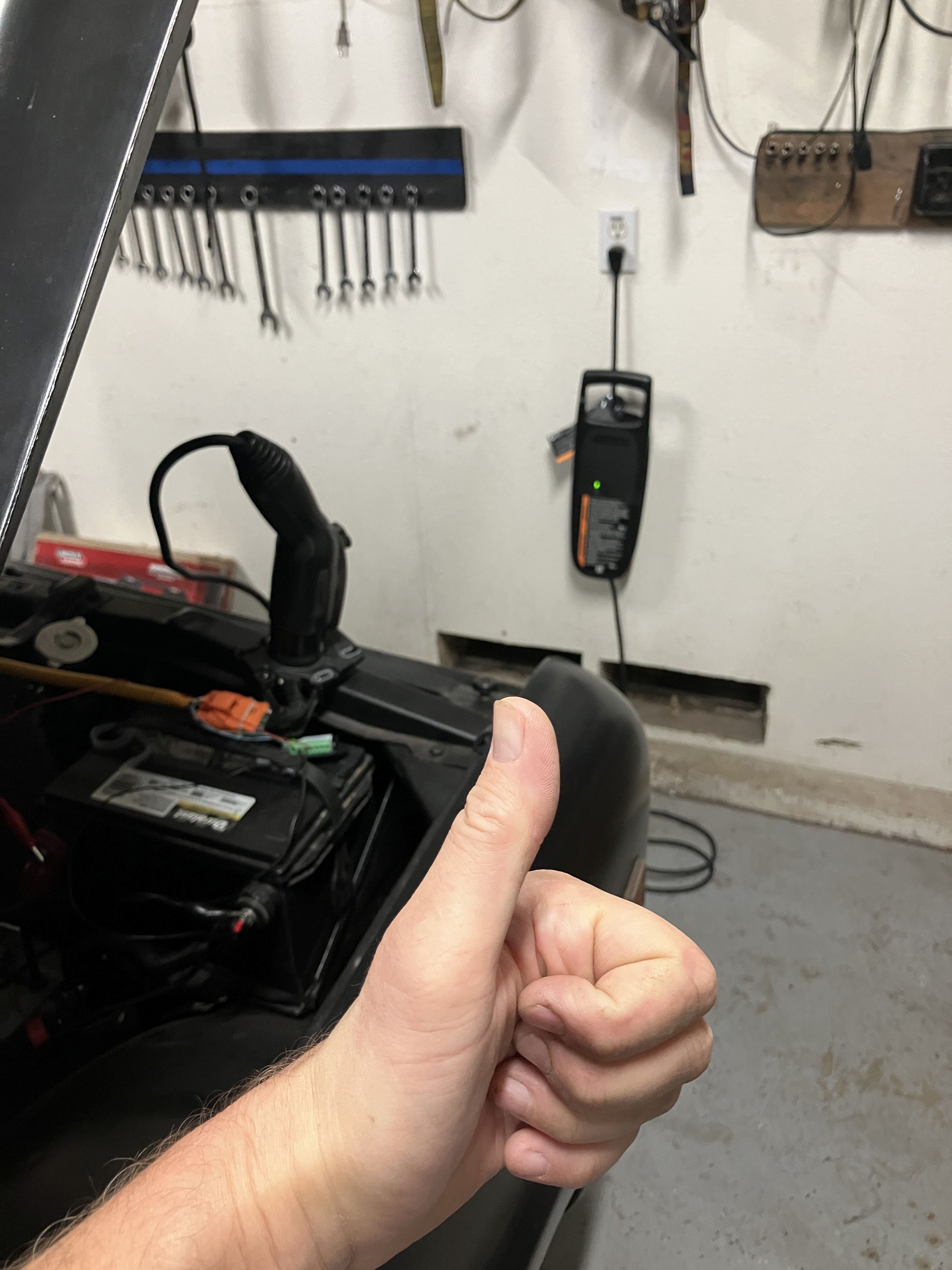 DISCLAIMER: The charge cord normally does not hang like this just from the outlet, I cleared all the clutter for the video, normally I use a tie down strap to ratchet it up to a hook above by it's handle !