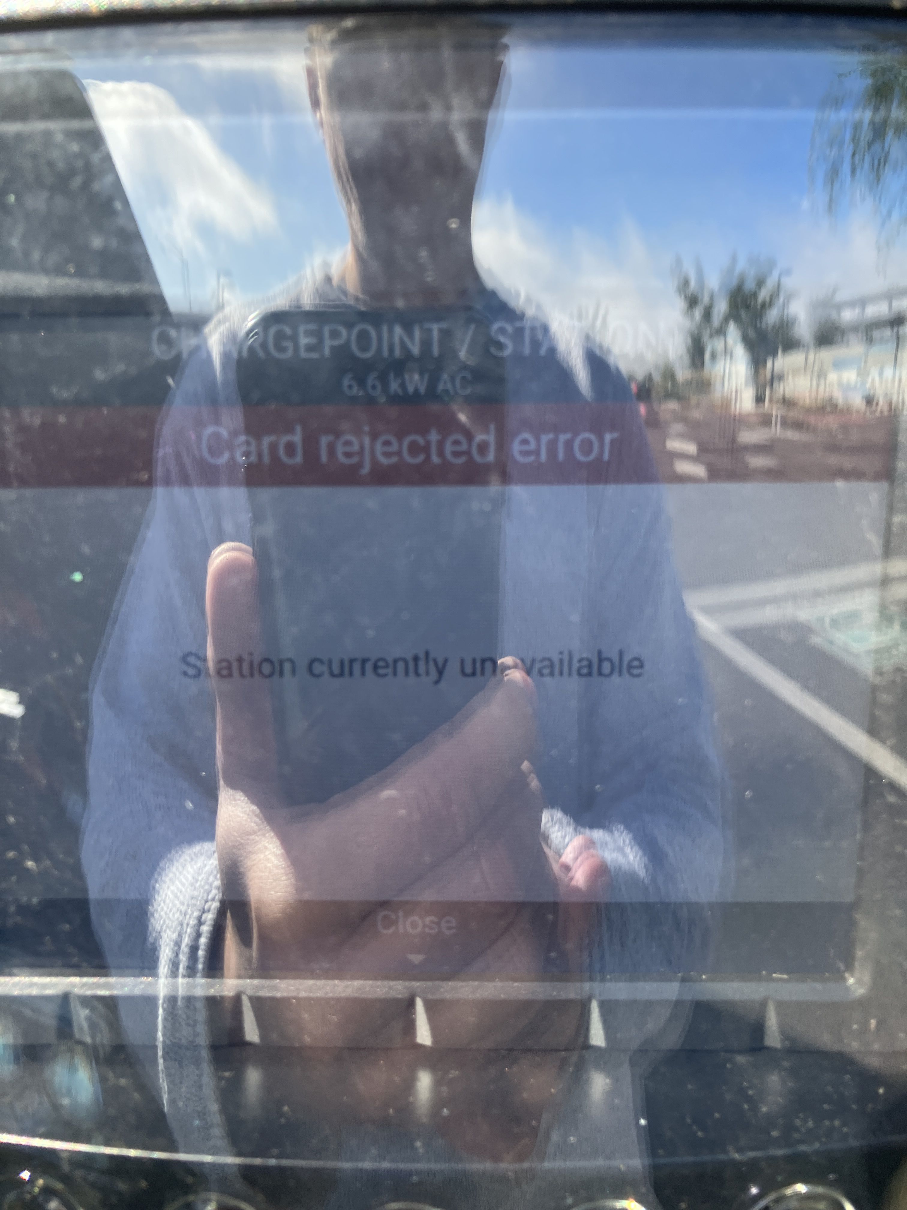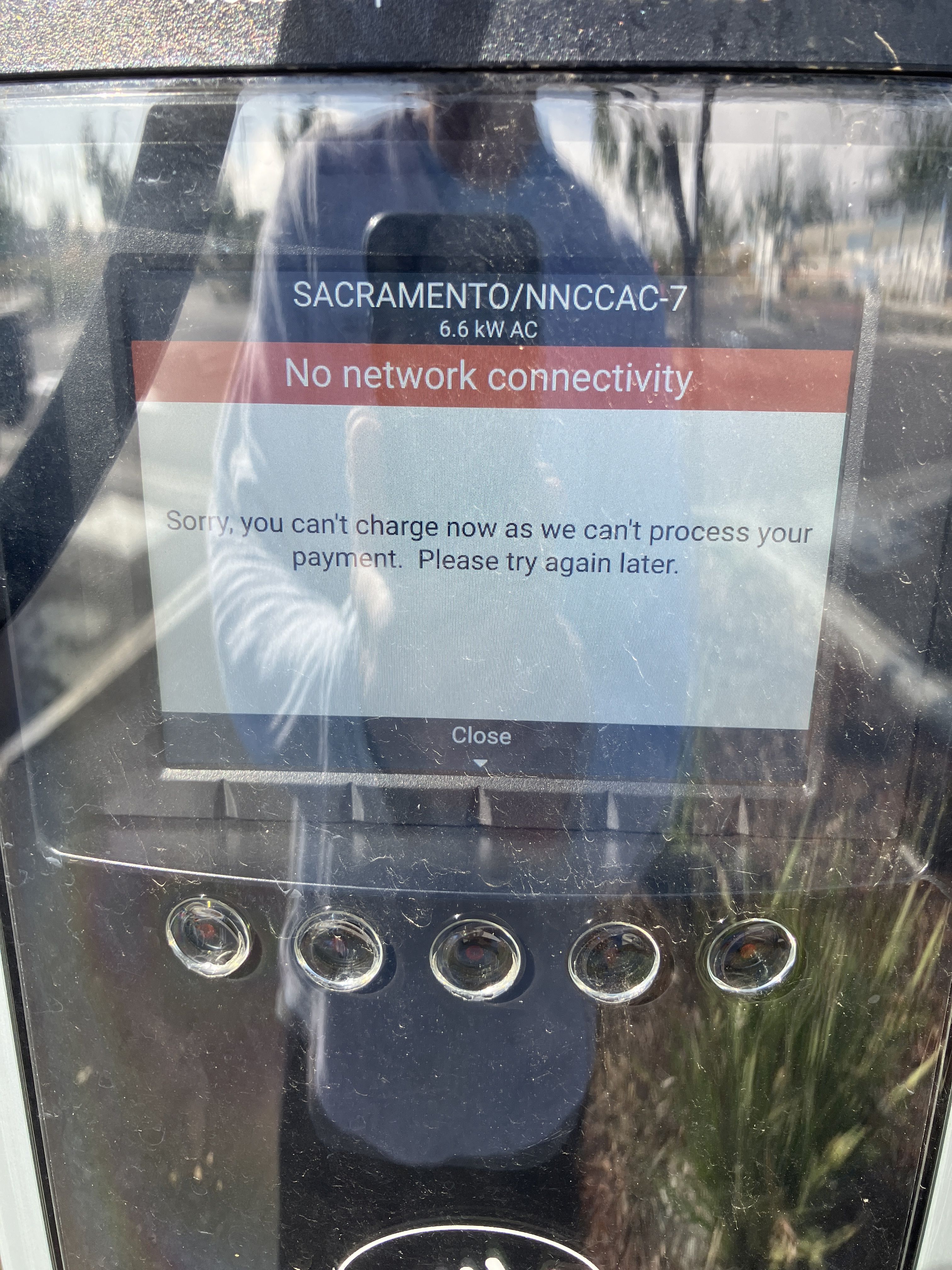 so I pulled up right next to a Chevy Volt, skipped a few stalls [using that urinal etiquette] and was welcomed by a slew of standard public charging station errors, ah yes, good times
