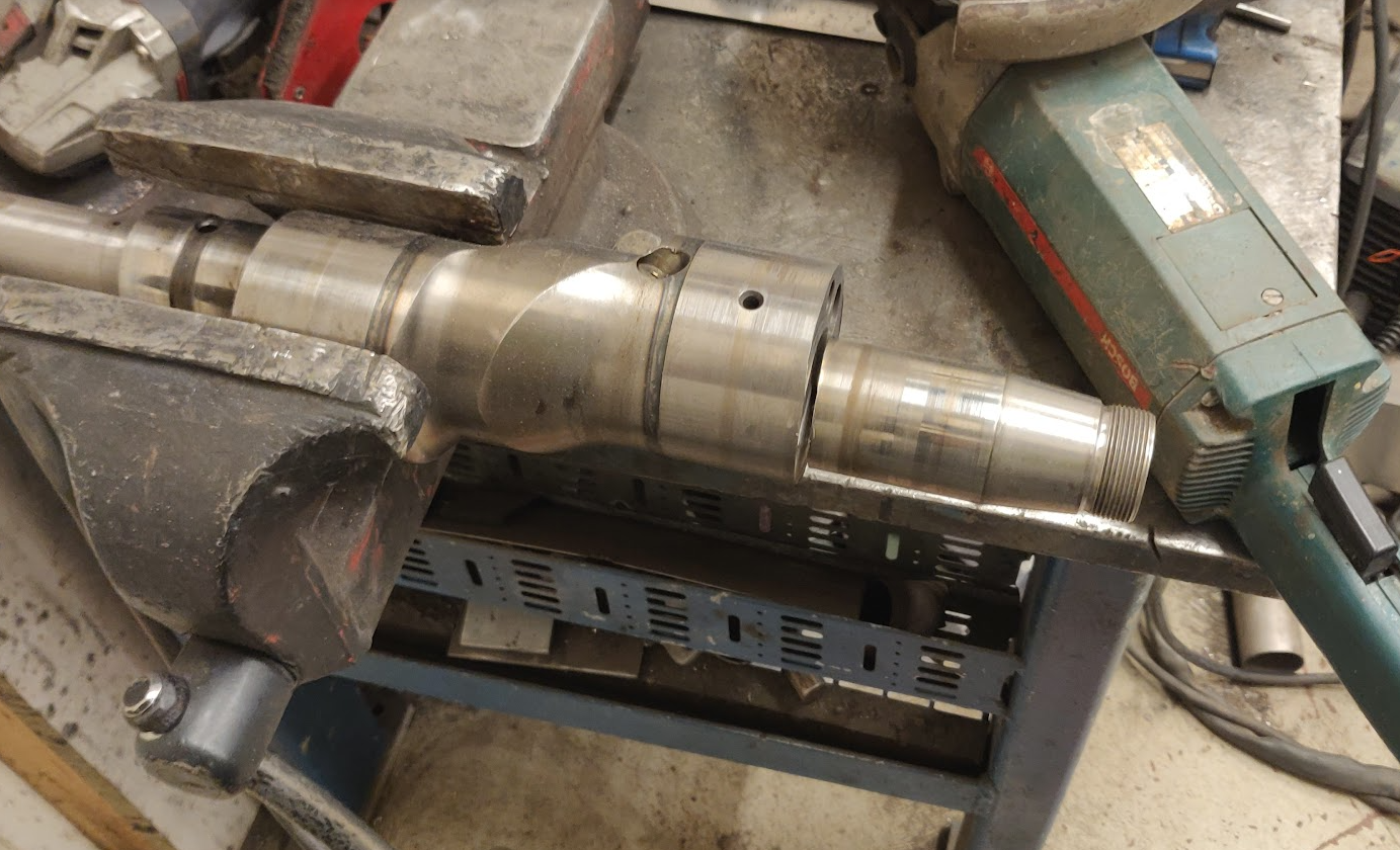 Second part was the adapter axle featuring the correct angle, locking pin and threads for the big nut fixing the flywheel: